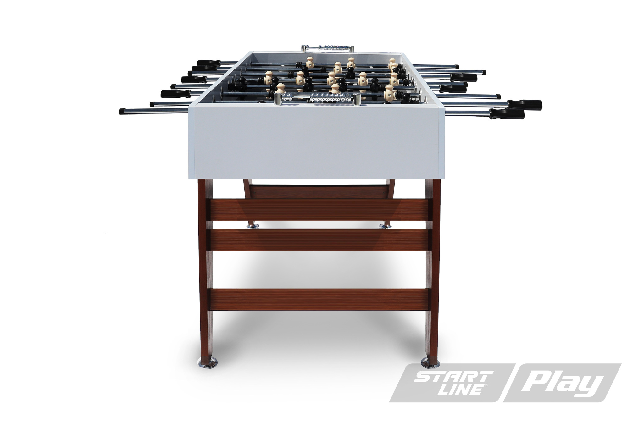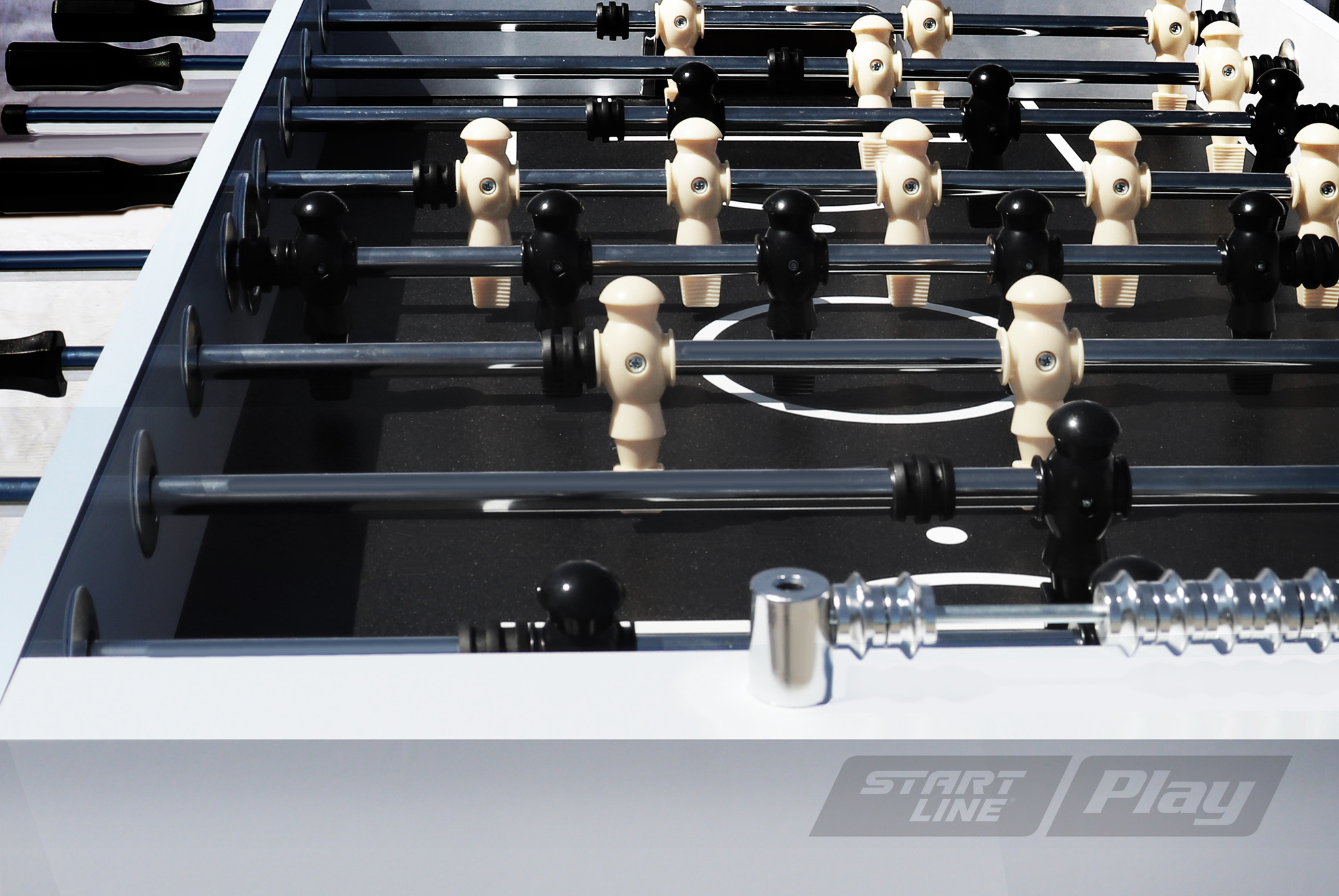 Home имеет крепкий каркас, устойчивые ножки благодаря чему статичен при игре. Данная модель способна выдерживать высокие нагрузки и самые напряженные матчи даже при интенсивной эксплуатации. Корпус, опоры и игровое поле выполнены из прочного МДФ, что гарантирует износостойкость стола к мелким царапинам и внешним повреждениям. Стальные хромированные штанги имеют плавный ход. Удобные рукоятки из пластика обеспечивают комфортный и крепкий хват. Монтаж игрового стола не представляет сложностей, легко осуществляется самостоятельно, без привлечения специалистов. В комплекте идет пошаговая инструкция по сборке и правила игры.