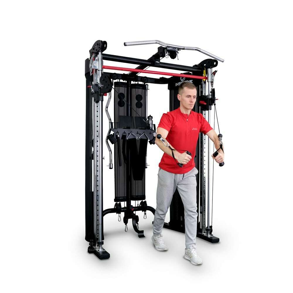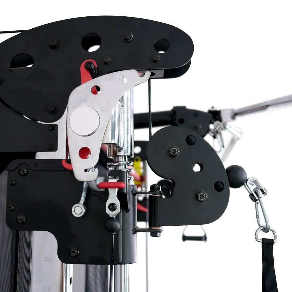 - Два независимых тяговых блока с двух сторон рамы позволяют проработать каждую сторону тела одновременно или по отдельности и обеспечивают сбалансированную и точную тренировку.