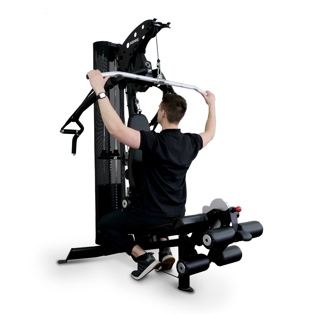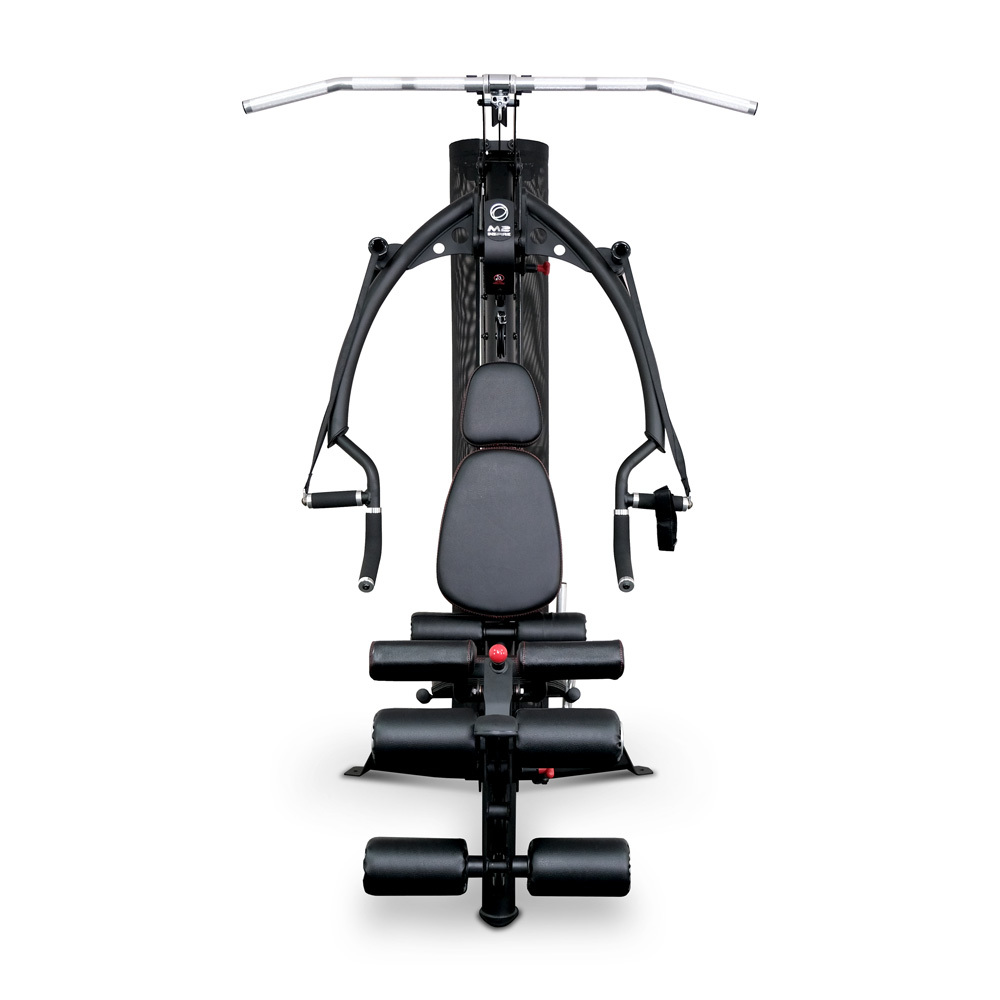- Рама M2 выполнена из сверхпрочной стали, шкивы — из нейлона. Прочность на разрыв используемых тросов — более 900 килограммов. Опоры рычагов оснащены шариковыми подшипниками с плавным и тихим ходом.