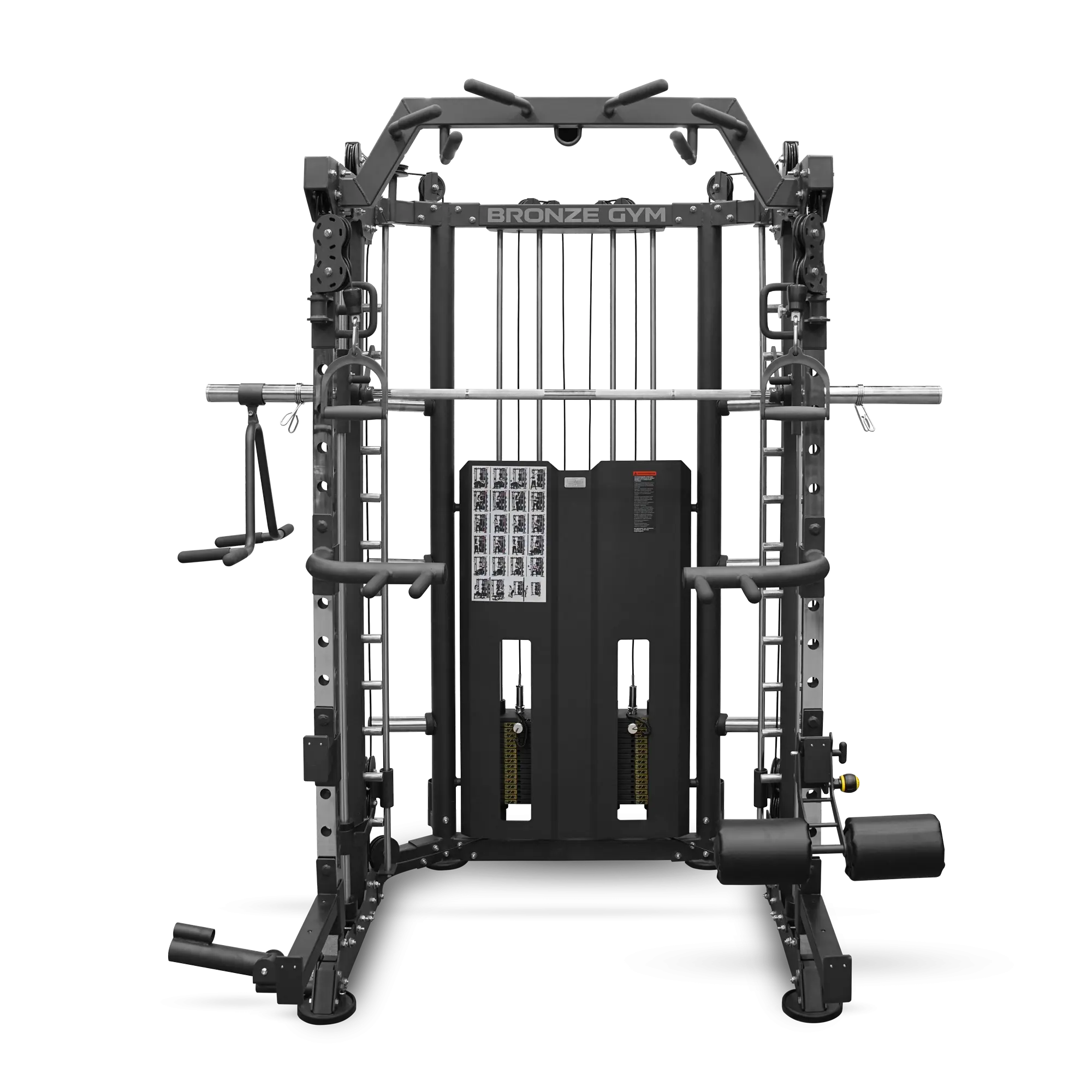 Наличие многопозиционного турника и держателей для дисков делает этот тренажер универсальным решением для силовых тренировок.