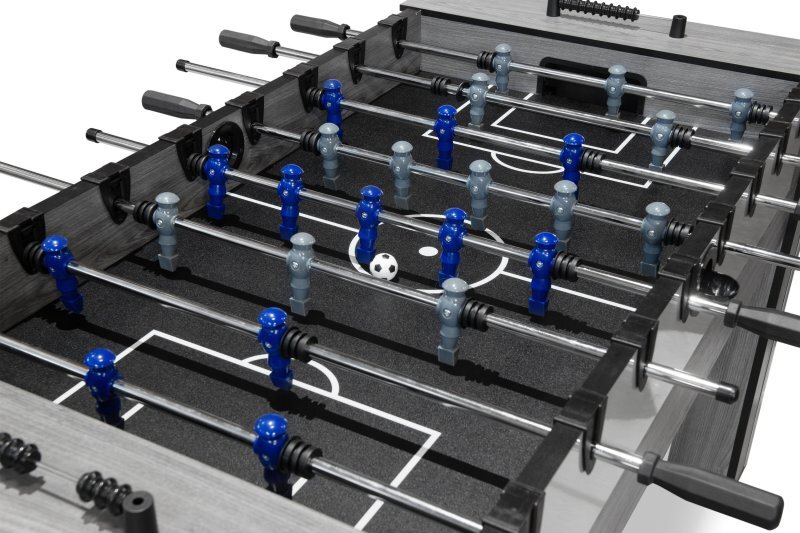 Механические счётчики голов, помогающие следить за ходом игры, располагаются на обоих концах стола. Этот стол также оборудован удобными мячеприёмниками и лотками для ввода мячей на игровое поле.