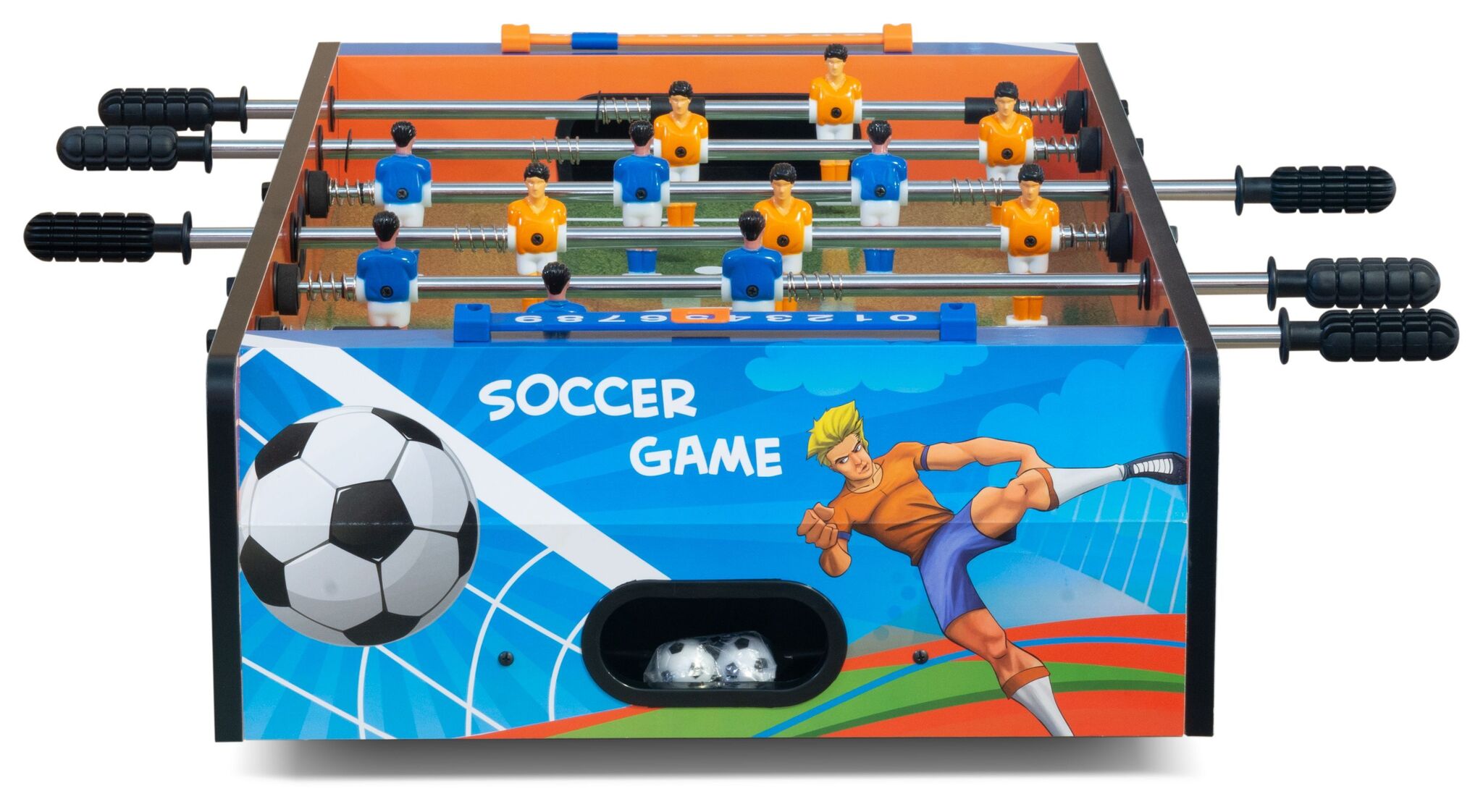 Футбол "Garlando F-Mini-II Telescopic" раскрашен яркими цветами на футбольную тему, что особенно понравится самым юным игрокам. Особая схема игроков - вратарь, крайние защитники, нападающие, делает игру еще увлекательней и захватывающей.