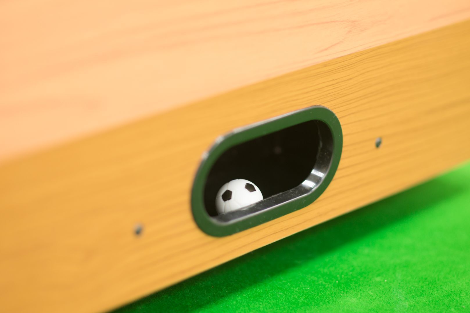 Мяч после гола возвращается в игру моментально. Он попадает в просторный карман, который находится за воротами со стороны каждого из игроков. Извлечь из него мяч — дело пары секунд!