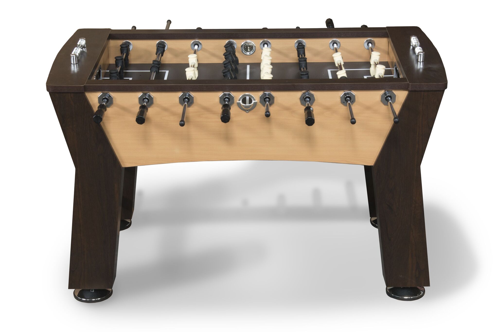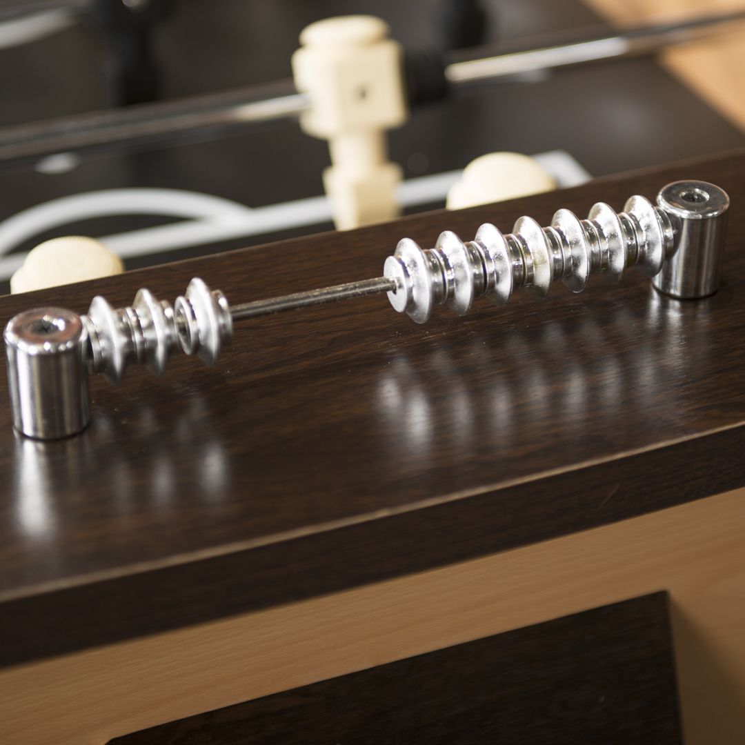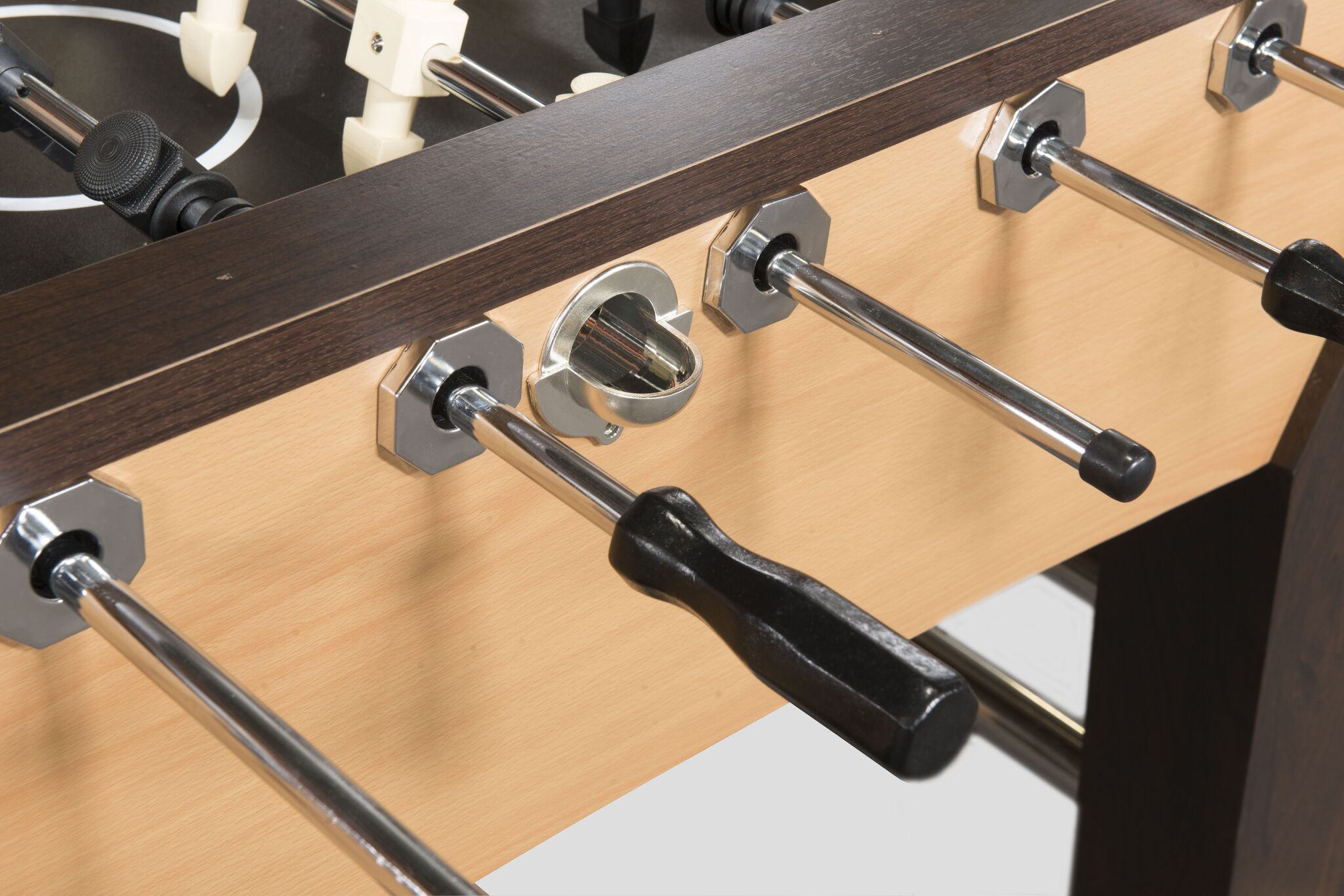 Лучшее в своём классе игровое поле изготовлено из МДФ с виниловым покрытием, которое надежно защищает поверхность поля от воздействия влаги, царапин и других повреждений. На металлические штанги нанесено хромированное покрытие, препятствующее появлению ржавчины.