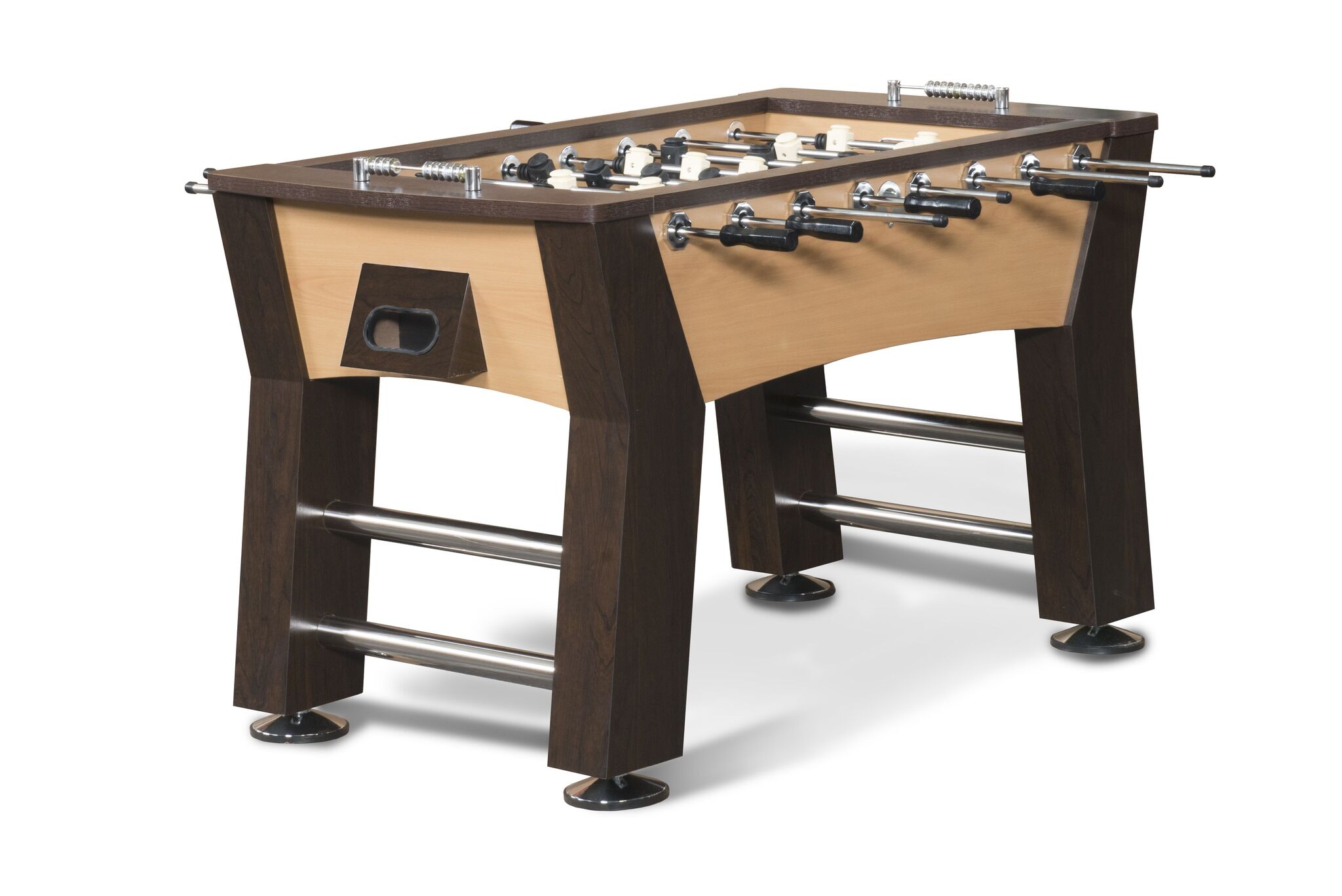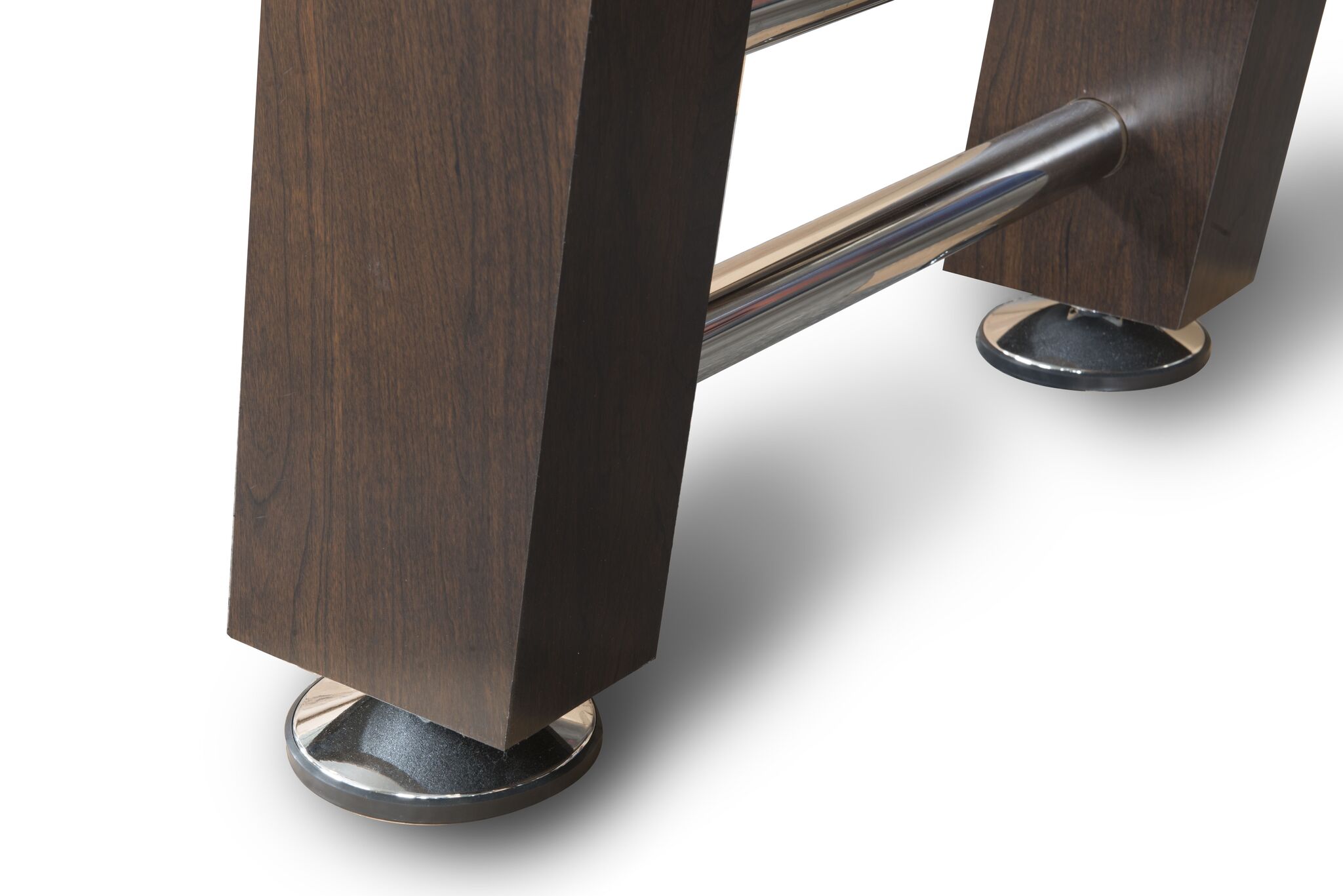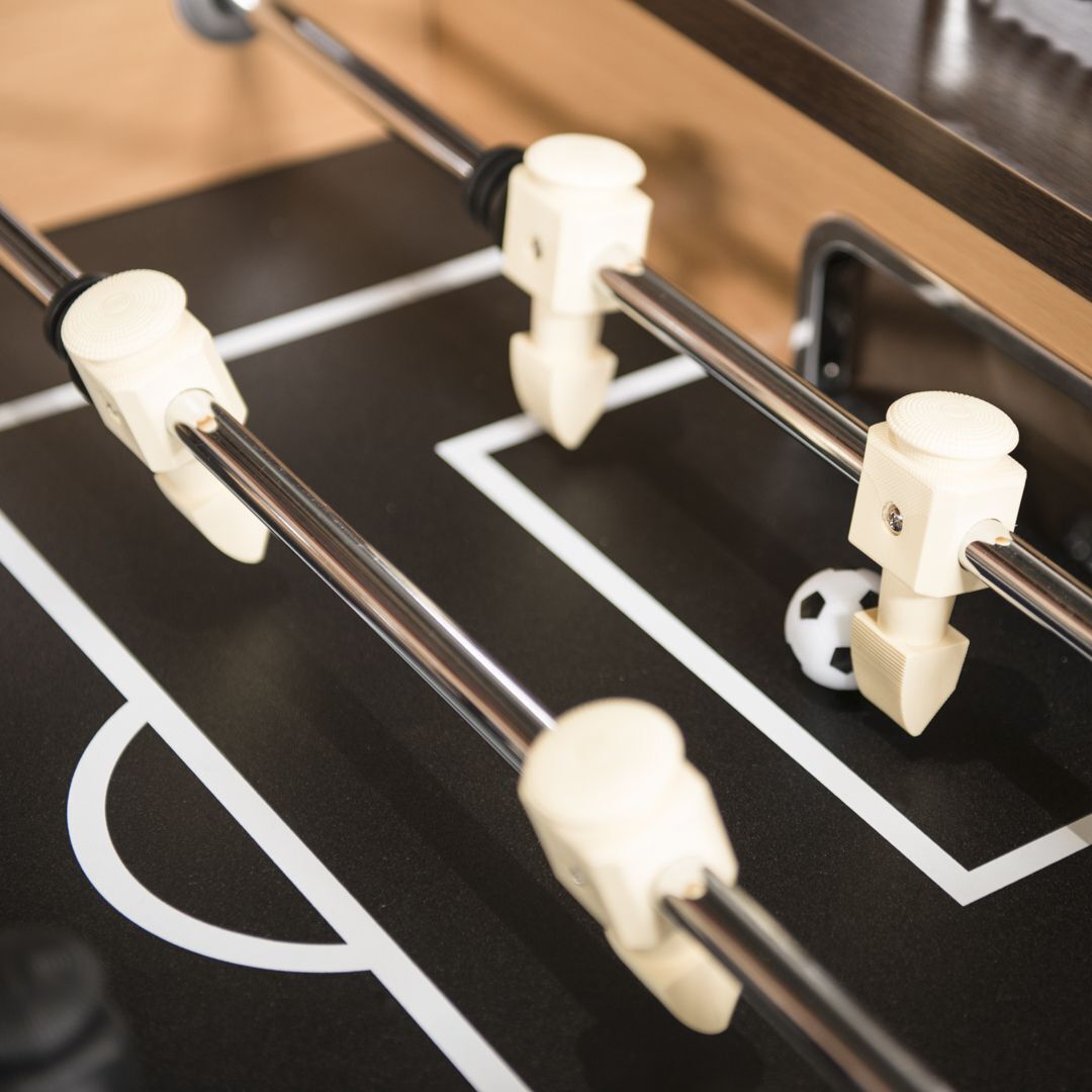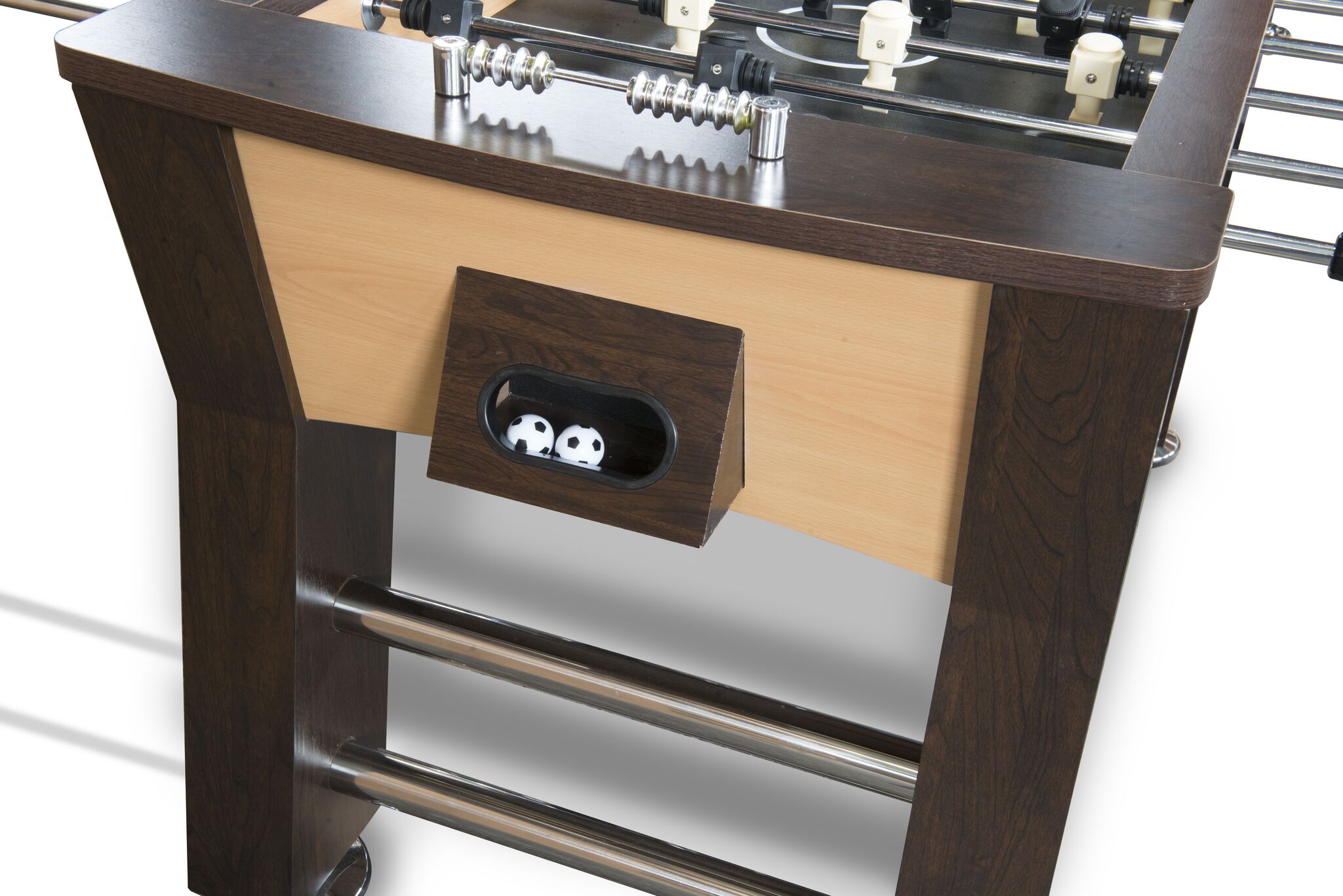 Лучшее в своём классе игровое поле изготовлено из МДФ с виниловым покрытием, которое надежно защищает поверхность поля от воздействия влаги, царапин и других повреждений. На металлические штанги нанесено хромированное покрытие, препятствующее появлению ржавчины.