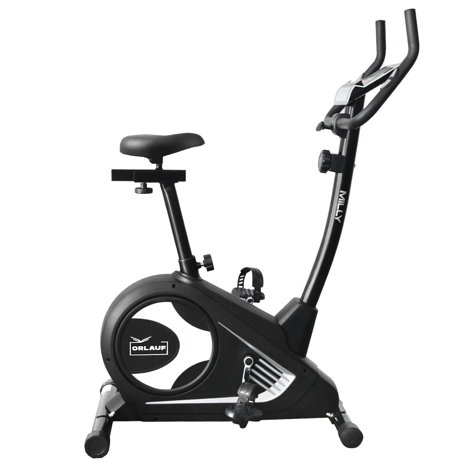 Orlauf Milly — надежный велотренажер для тренировок практически любой интенсивности. Из этой модели мы убрали все лишнее, чтобы снизить стоимость, и оставили только то, что влияет на комфорт и качество занятий.