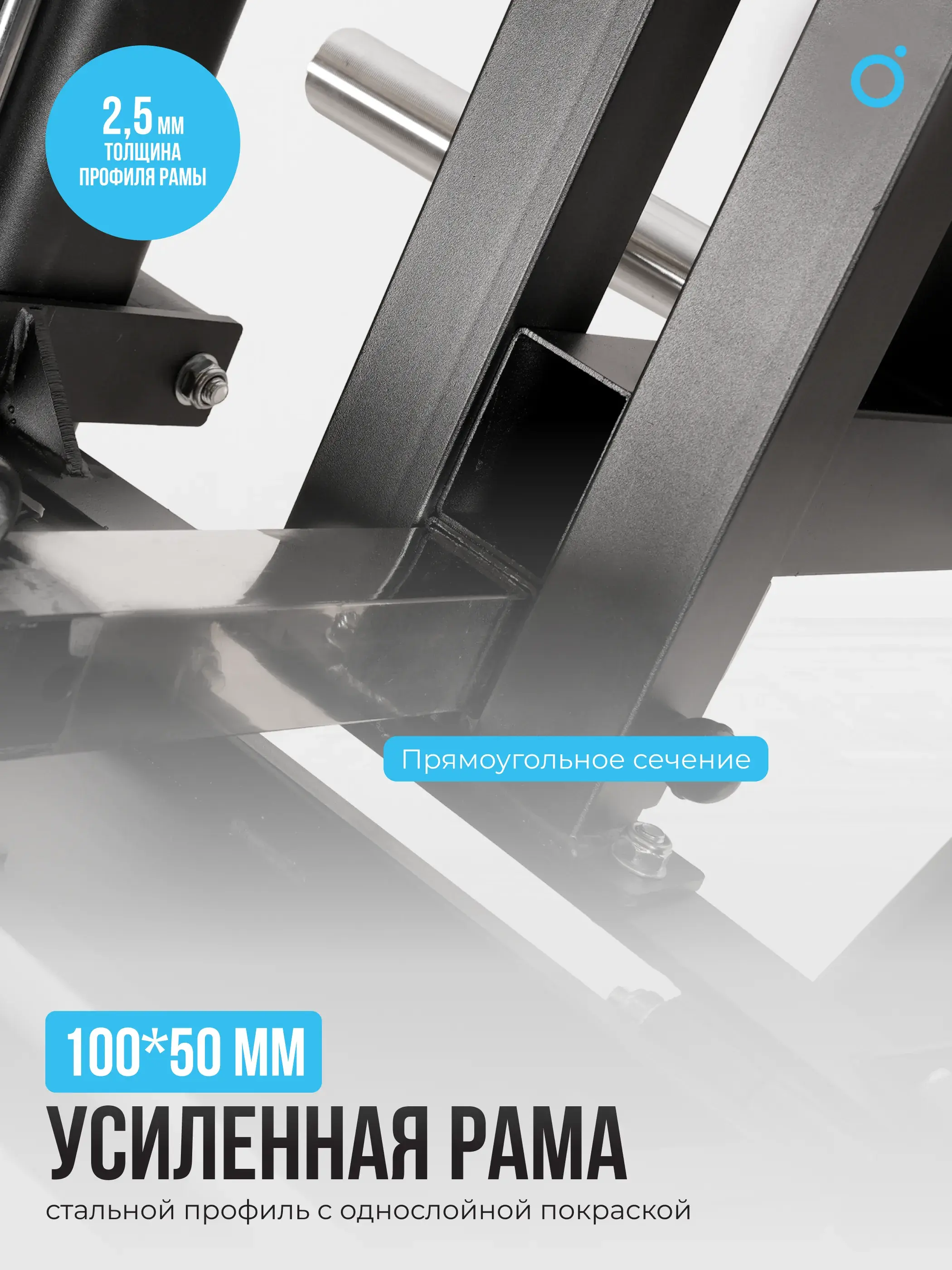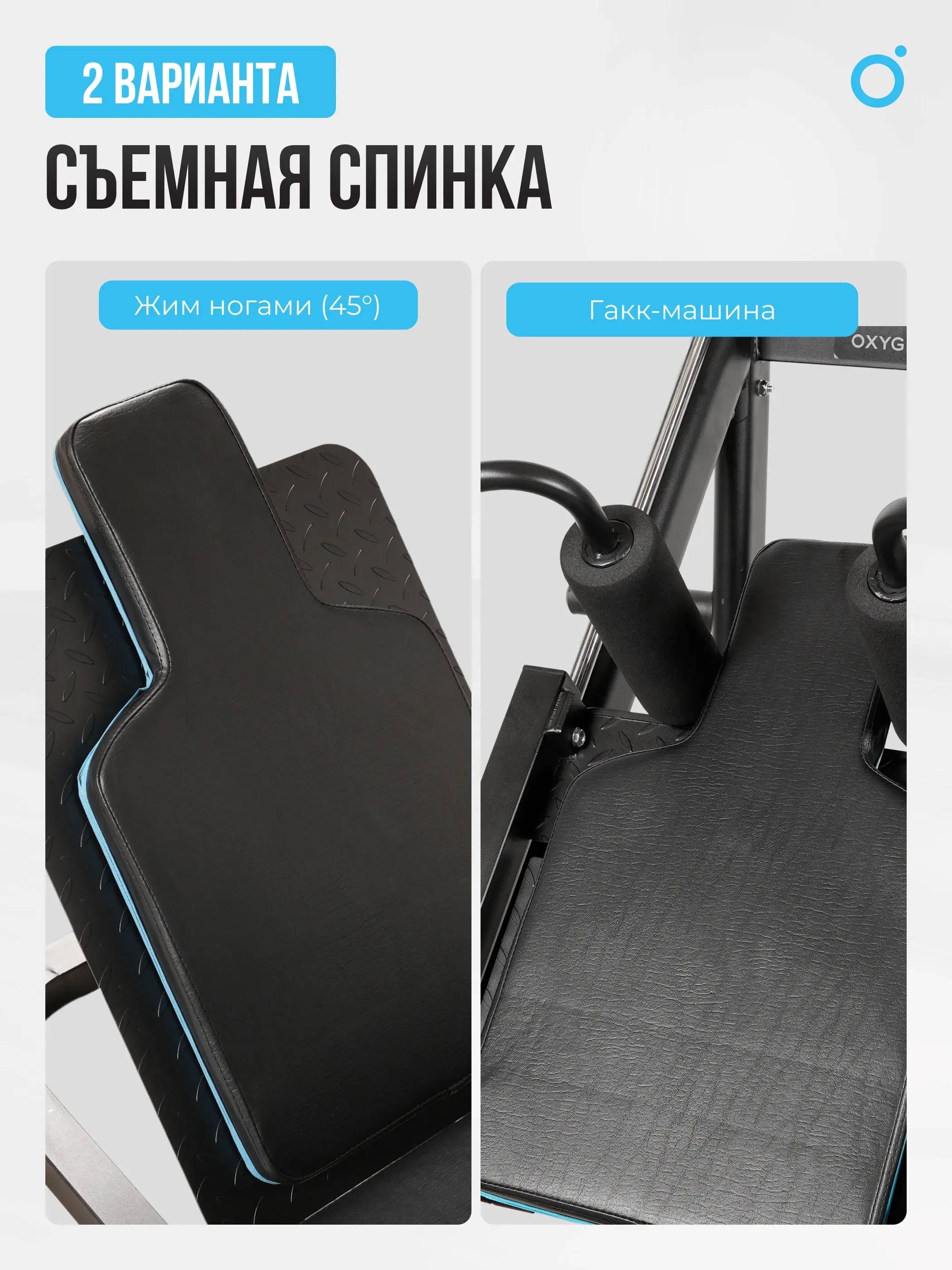 • многофункциональность: возможность выполнения гакка и жима ногами под углом 45 градусов для комплексной тренировки мышц ног;