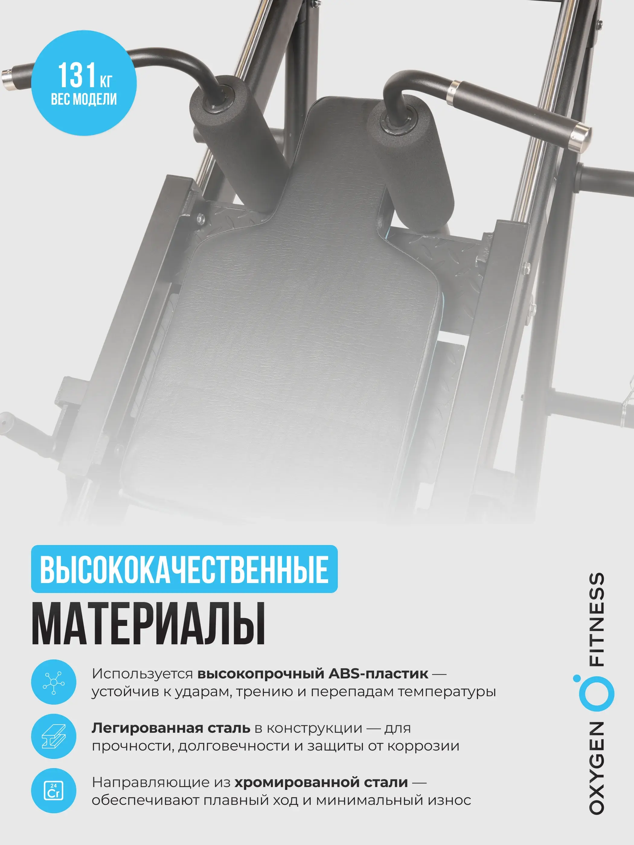 Жим ногами OXYGEN FITNESS HADLEY — отличный выбор для тех, кто хочет добиться максимальных результатов в тренировках ног, сочетая комфорт, безопасность и эффективность.