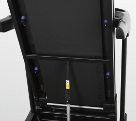 К другим особенностям дорожки относятся гидравлическая система складывания easyFOLD™, которая существенно облегчает складывание дорожки, а при раскладывании обеспечивает медленное опускание полотна в последней фазе, гарантируя безопасность. Перемещение дорожки происходит за счет 4-х транспортировочных роликов.