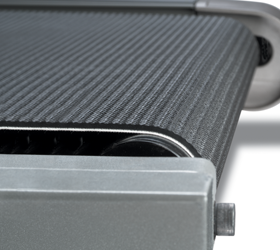 К числу дополнительных опций относятся жироанализатор, кнопки быстрой регулировки на поручнях и дублирующие датчики пульса. Гидравлическая система складывания easyFOLD™ существенно облегчает складывание дорожки, а при раскладывании обеспечивает медленное опускание полотна в последней фазе, гарантируя легкость и безопасность.