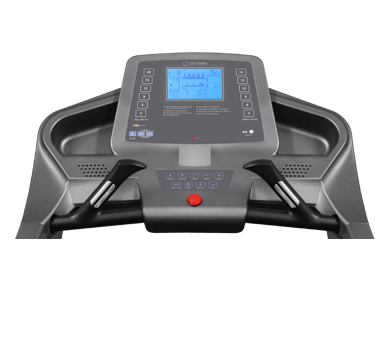 Консоль дорожки с динамиками и входами USB и audio IN оснащена большим голубым LCD дисплеем с диагональю 16.5 см., который выводит на экран все возможные параметры, включая тренировочный профиль. В программный пакет включены 23 предустановленных режима, а также 5 пользовательских и 2 пульсозависимые программы. Для точного определения пульса и просто комфортной тренировки в компьютер встроен беспроводной приемник.