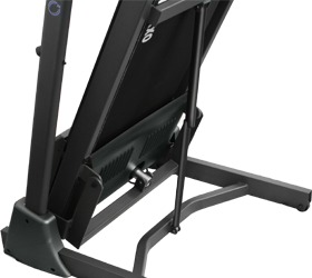 Амортизация включает в себя современную двойную деку с системой динамических ультрамягких подушек dualFLEX™, парафинированную демпфирующую деку толщиной 22 мм. и двухслойное полимерное беговое полотно толщиной 2.5 мм. швейцарской компании Habasit. Двухфазная гидравлическая система складывания easyFOLD™ существенно облегчает складывание дорожки, а при раскладывании обеспечивает медленное опускание полотна в последней фазе, гарантируя легкость и безопасность.