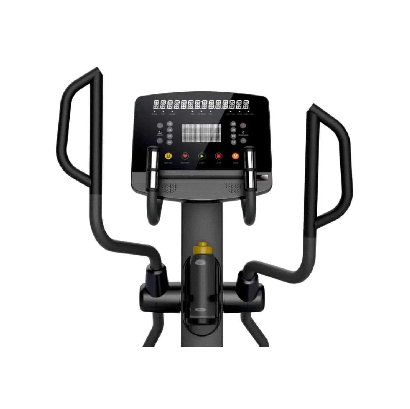 Консоль имеет интуитивно понятный интерфейс, а управлять нагрузкой и контролировать пульс, можно не отрывая рук от рукояток благодаря хорошо зарекомендовавшую себя технологии. На матричном дисплее выводится необходимые параметры тренировки: дистанция, скорость, время, потраченные калории, уровень нагрузки и сердечный ритм . Мягкие, широкие педали в сочетании с большой длиной шага позволяют почувствовать естественный комфорт во время тренировки.
