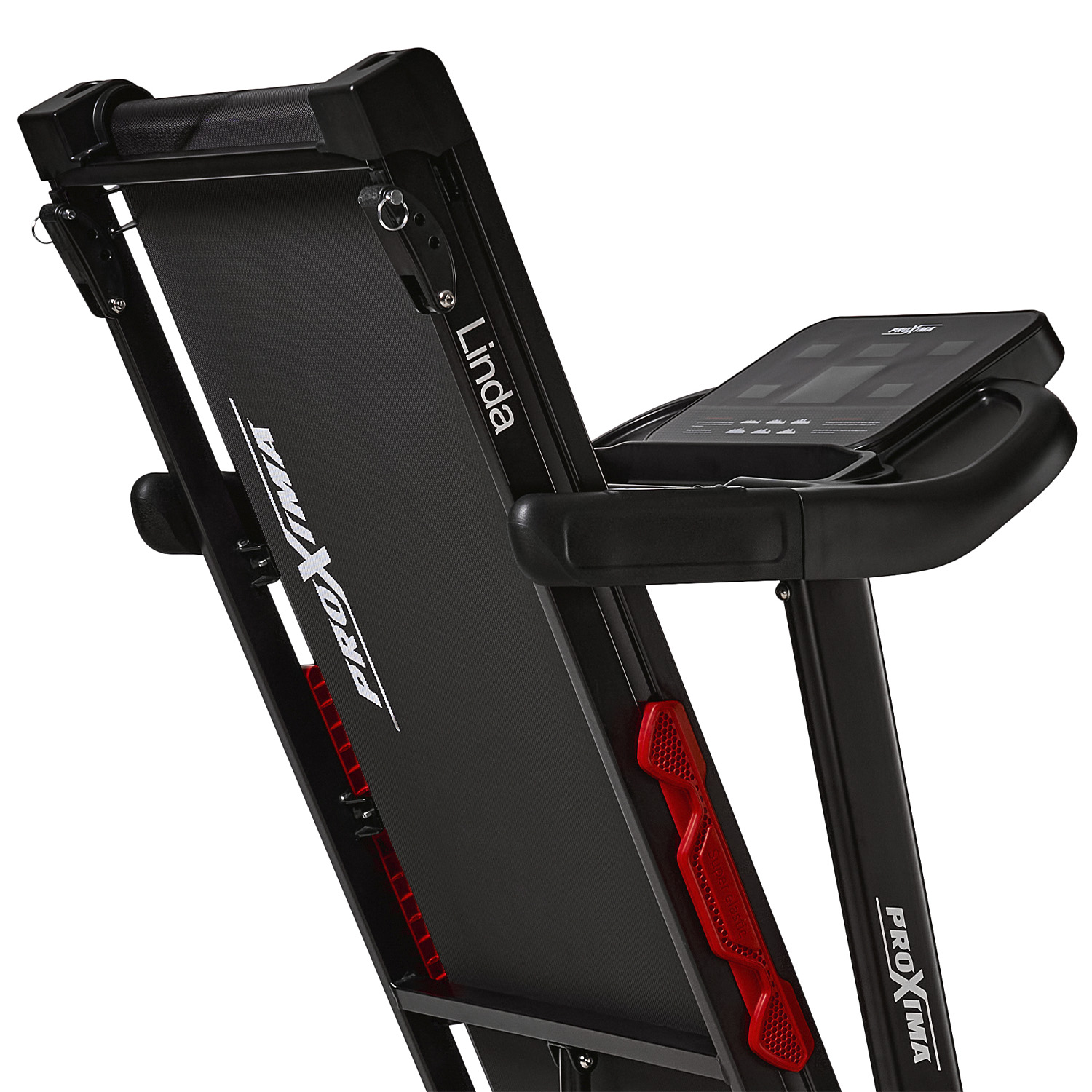 Гидравлическая система складывания «JUST CLICK» существенно облегчает складывание тренажера, а при раскладывании обеспечивает медленное опускание полотна в последней фазе, гарантируя легкость и безопасность.