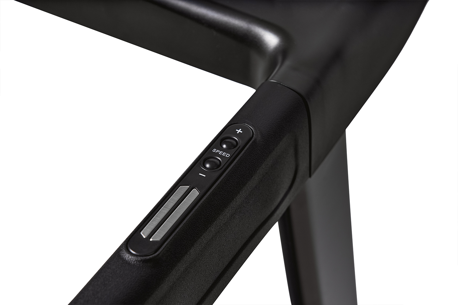 Сенсорные датчики на поручнях измеряют сердечный ритм. Кнопки регулировки скорости на рукоятках позволят менять ее без отрыва от тренировки.
