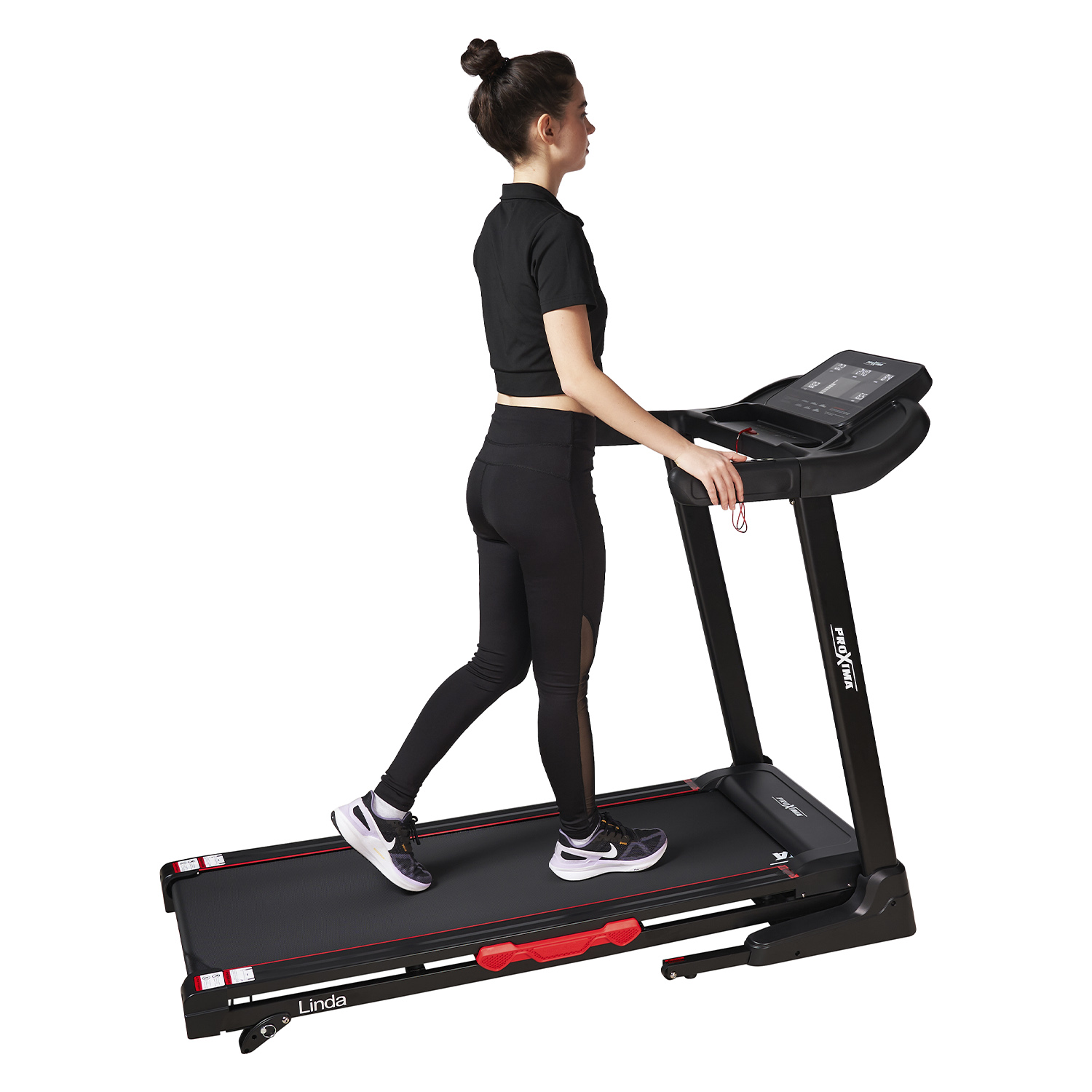 Во время тренировки все ключевые показатели - скорость, время, дистанция, калории, частоту пульса, текущий профиль выводятся на информативный LED дисплей с пятью окошками.
