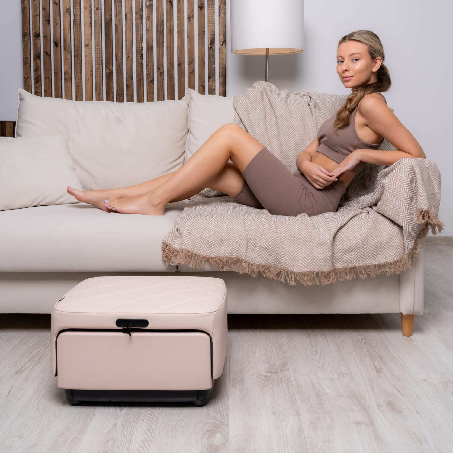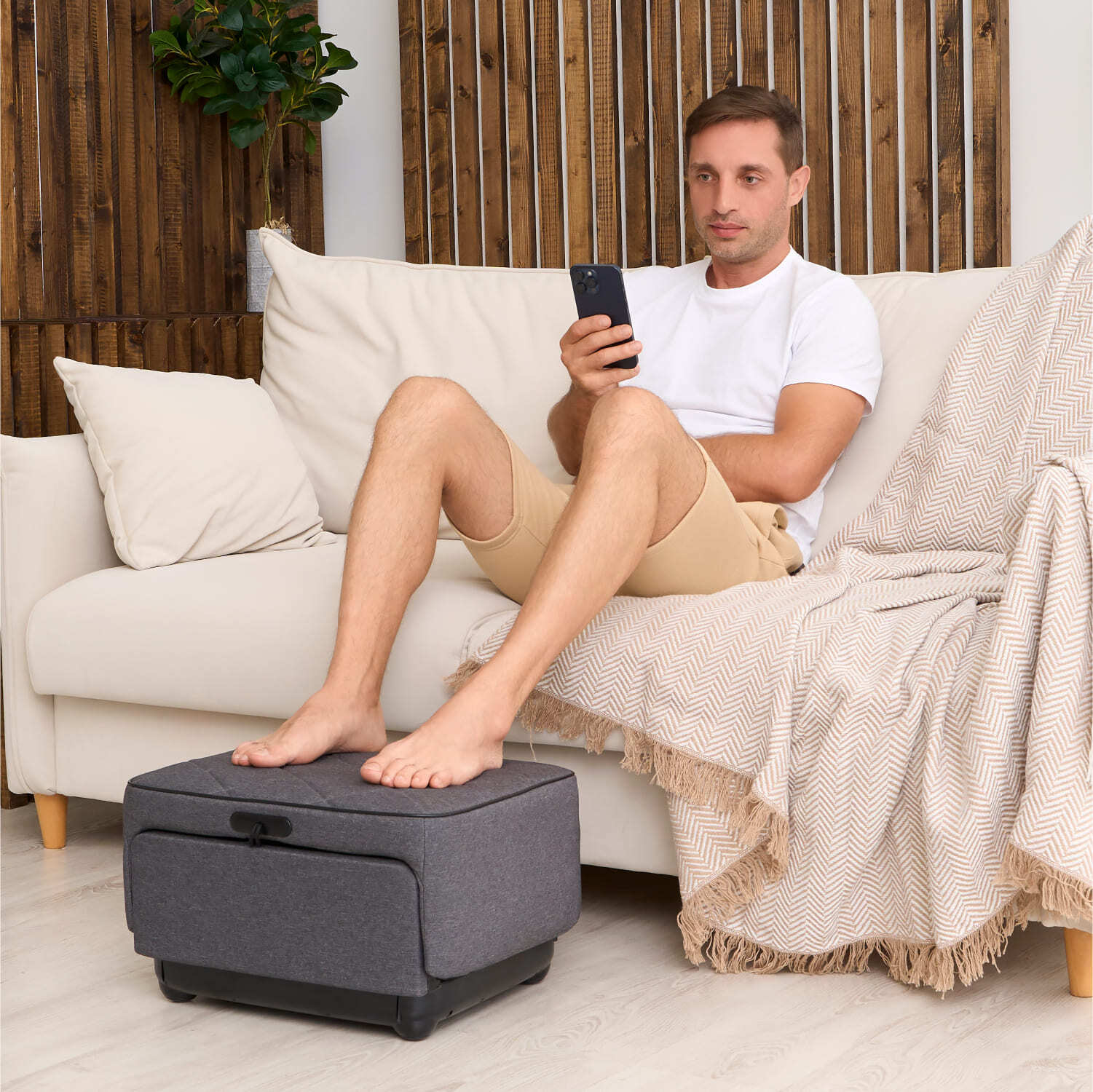 Наш массажер для стоп и икр объединяет в себе три важных функции: массаж стоп, лимфодренаж и удивительно удобное место для отдыха.