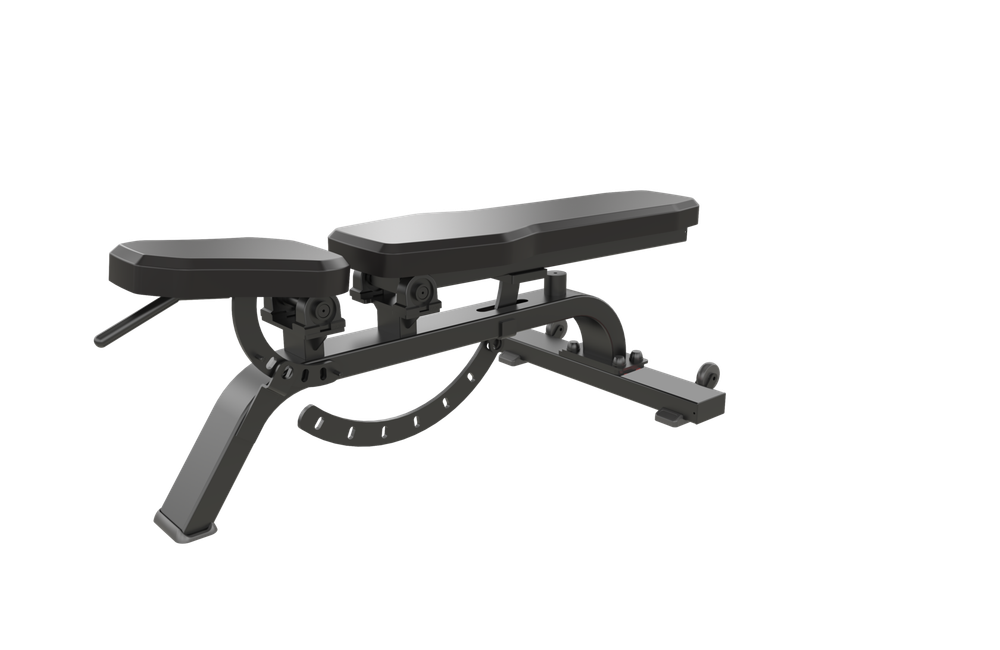 Регулируемая скамья применяется для тяжелоатлетических упражнений с гантелями и штангой. Ее можно использовать совместно с машиной Смита и различными атлетическими стойками. Для тренировок мышц пресса, спины, груди. Универсальная конструкция имеет несколько вариантов изменения угла наклона