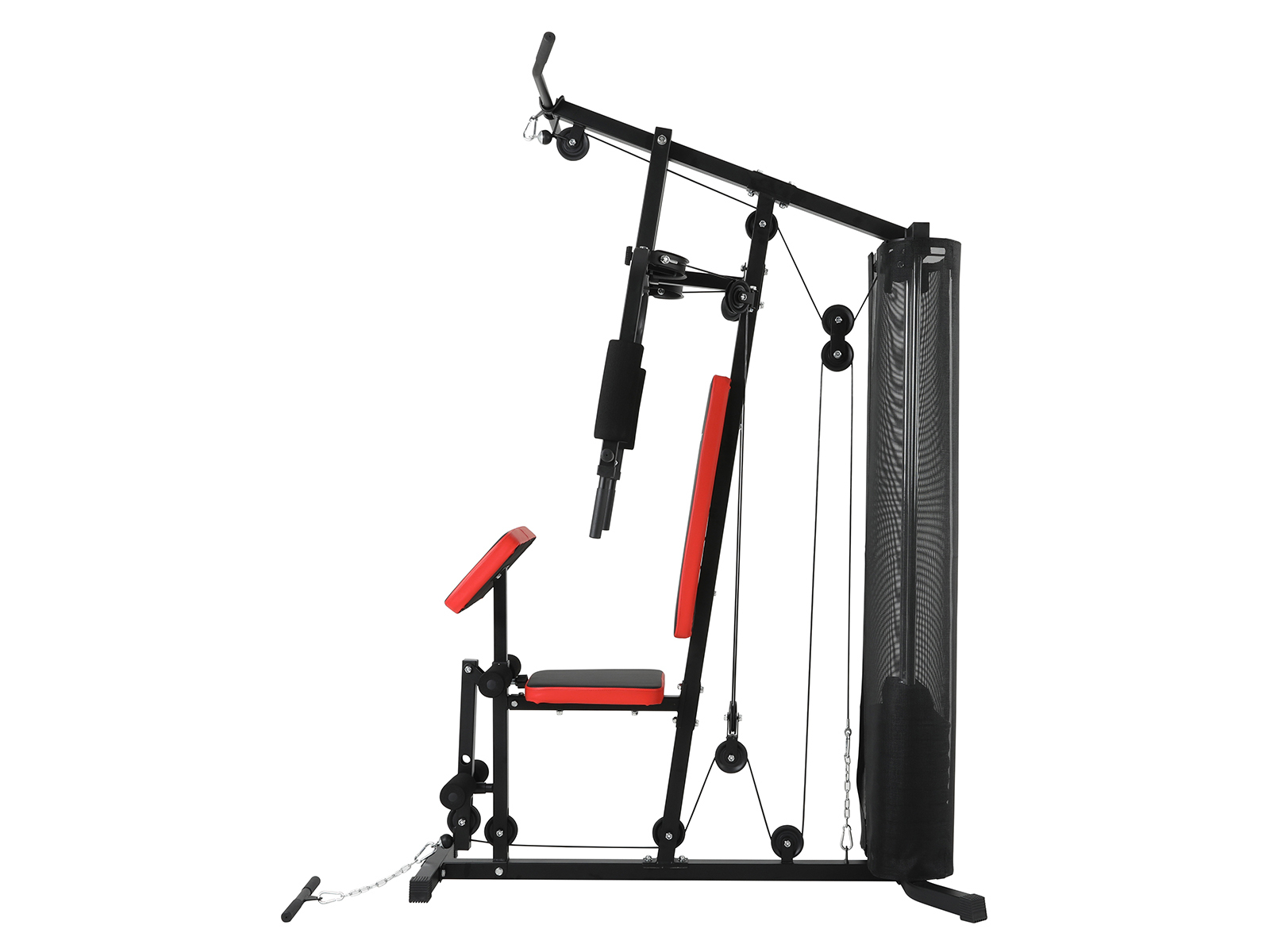 Отягощение осуществляется грузовыми блоками общим весом 50 кг. Максимальный вес пользователя составляет 140 кг.