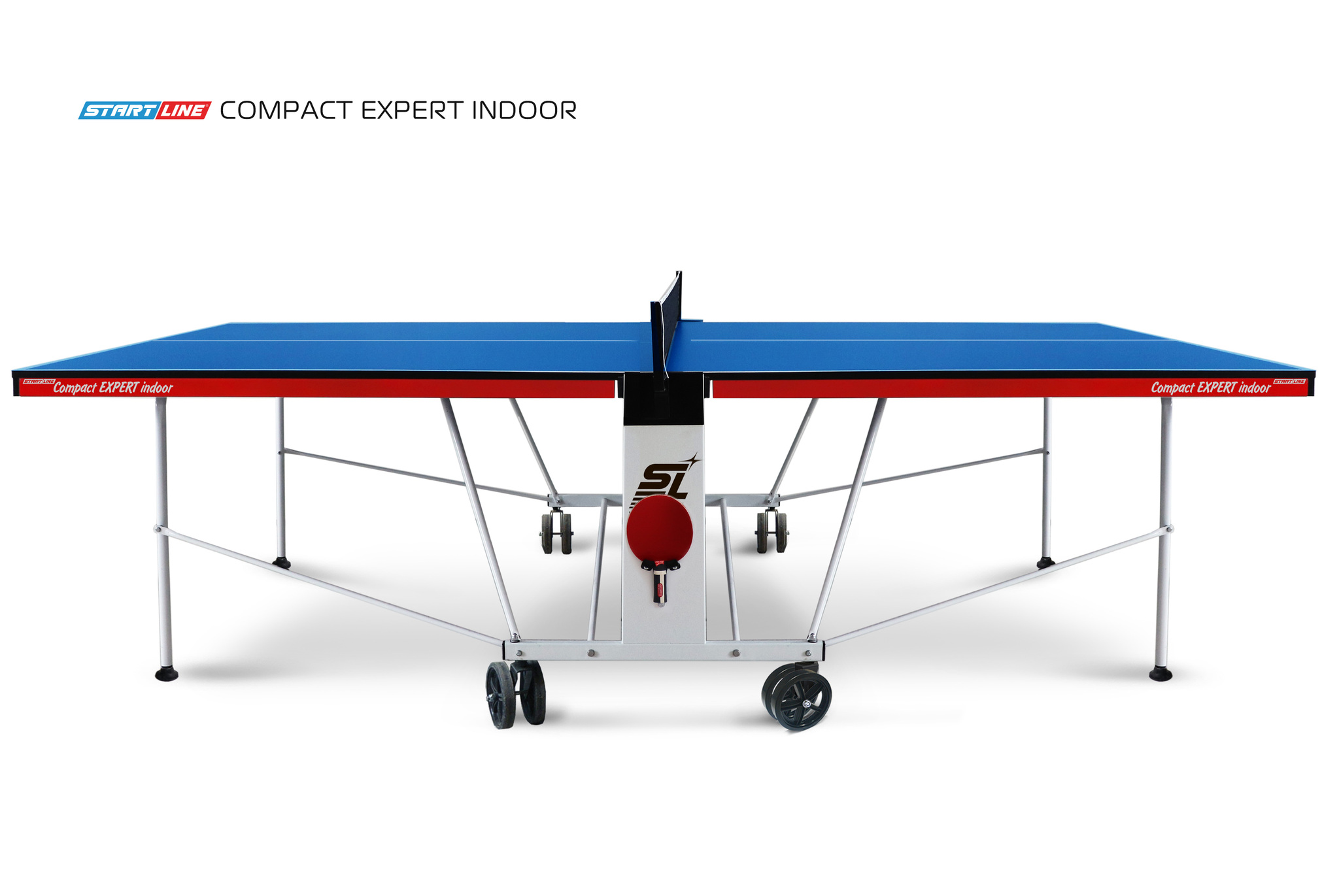 Новая разработка конструкторского бюро Start Line объединила в себе современные методы построения стола, передовые технологии трансформации и выразительный дизайн. Размер теннисного стола соответствует международным стандартам. В столе спроектирована новая уникальная система складывания— усовершенствованный механизм позволяет одному человеку легко сложить и быстро разложить стол. Специальные надежные фиксаторы закрепляют положение как в разложенном, так и в сложенном виде. Модель компактна при хранении и занимает минимум пространства. Наличие обрезиненных маневровых колес облегчают перемещение стола в нужную зону. Регулируемая высота боковых опор дает возможность выставить уровень игрового поля даже на неровной поверхности.nbsp;nbsp;Конструкция предусматривает в боковых накладках место для хранения ракетки.