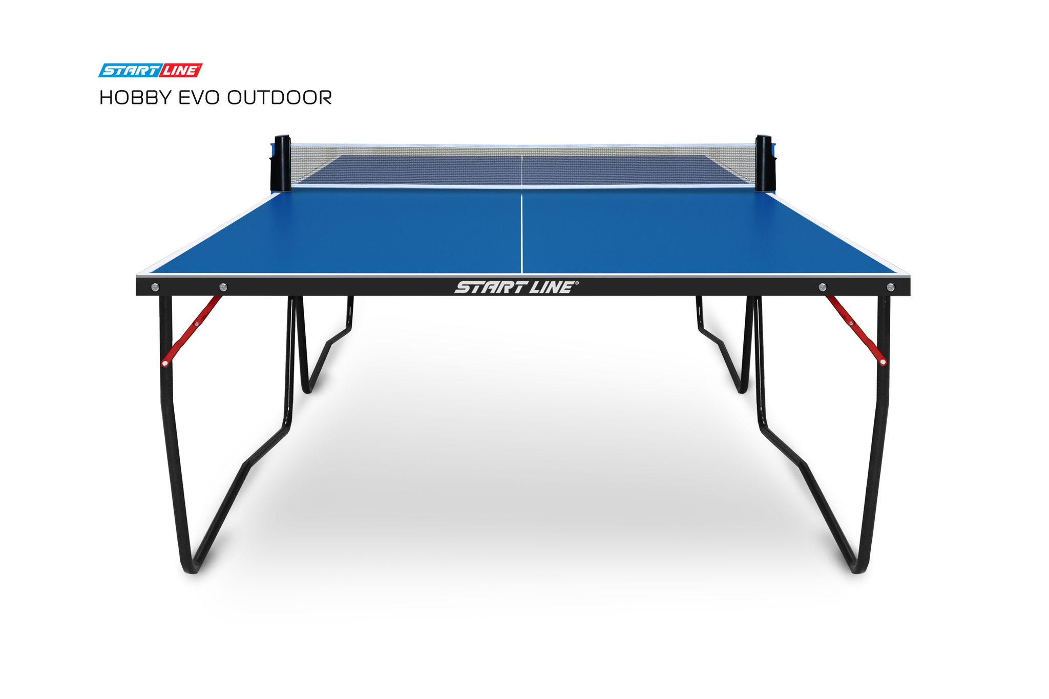 Hobby Evo Outdoor - любительский теннисный стол для использования на открытых площадках и в помещениях. Модель ультрасовременного дизайна. Ноги стола специальной формы, с характерным изгибом. Раскосы ярко-красного цвета с надежной фиксацией обеспечивают устойчивость конструкции в разложенном виде и во время игры. Размер теннисного стола соответствует международным стандартам ITTF.
