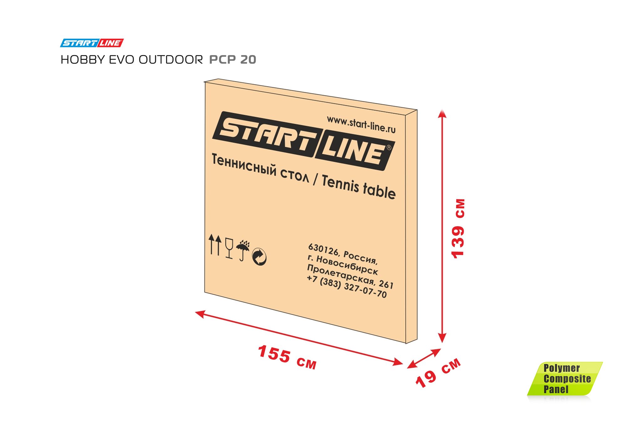 Игровое поле Polymer Composite Panel ( PCP) толщиной 20 мм – это собственная разработка Start Line. Первой моделью с новой столешницей PCP 20 мм стал теннисный стол HOBBY EVO OUTDOOR PCP 20. Преимущества Polymer Composite Panel ( PCP) - Материал РСР абсолютно устойчив к атмосферным явлениям, стол может эксплуатироваться на открытых площадках от -25°С до +35°С и высокой влажности. Панель РСР дает хороший отскок 21 см и сохраняет высокие игровые характеристики при длительном использовании на открытых площадках. Конструкция стола с панелью PCP имеет усиленную раму, которая задает дополнительную жесткость столу, закрепляет игровое поле и исключает «эффект барабана». Кромка столешницы толщиной 1 мм (вместо стандартной 0,45 мм) надежно защищает торец от повреждений. При толщине столешницы в 20 мм, стол остается легким и мобильным, что важно при его перемещении и транспортировке.