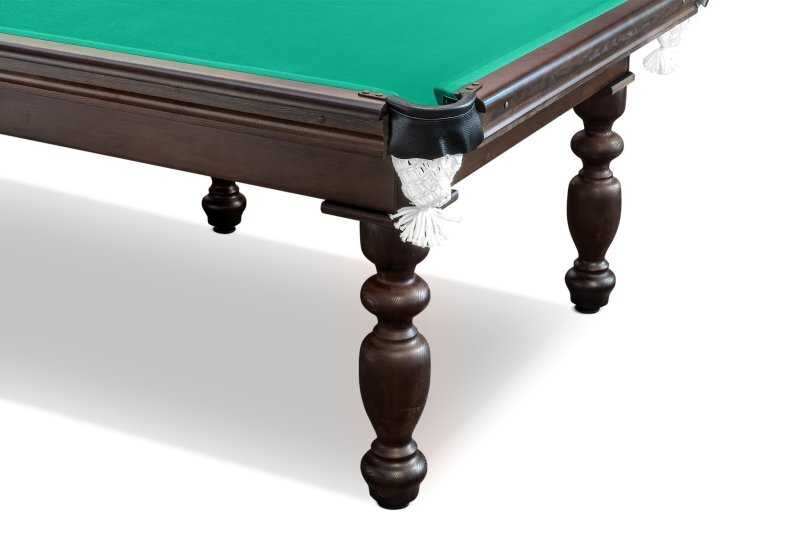 Для начала игры необходимо всего лишь прикрутить ноги стола к игровому полю. Стол и борта уже обтянуты сукном и не требуют сложной сборки. Небольшой вес позволяет легко транспортировать стол. Опоры снабжены домкратами, которые позволяют выровнять стол горизонтально на любой поверхности с перепадом высот до 35 мм.