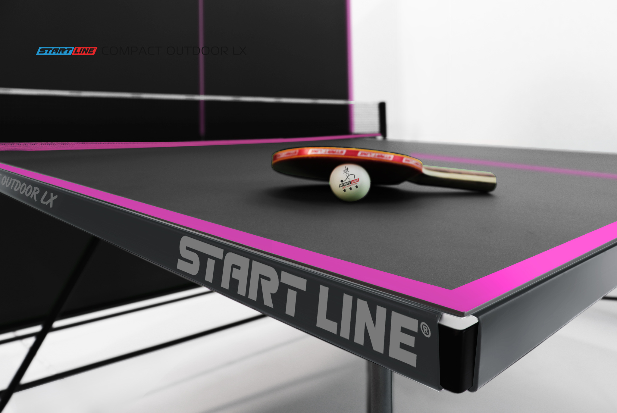 Главное отличие модели Compact-LX Всепогодный Black - сочетание стильного черного цвета столешницы и контрастной фиолетовой разметки. Теннисный стол Compact-LX Всепогодный Black станет центральной фигурой любой открытой площадки.