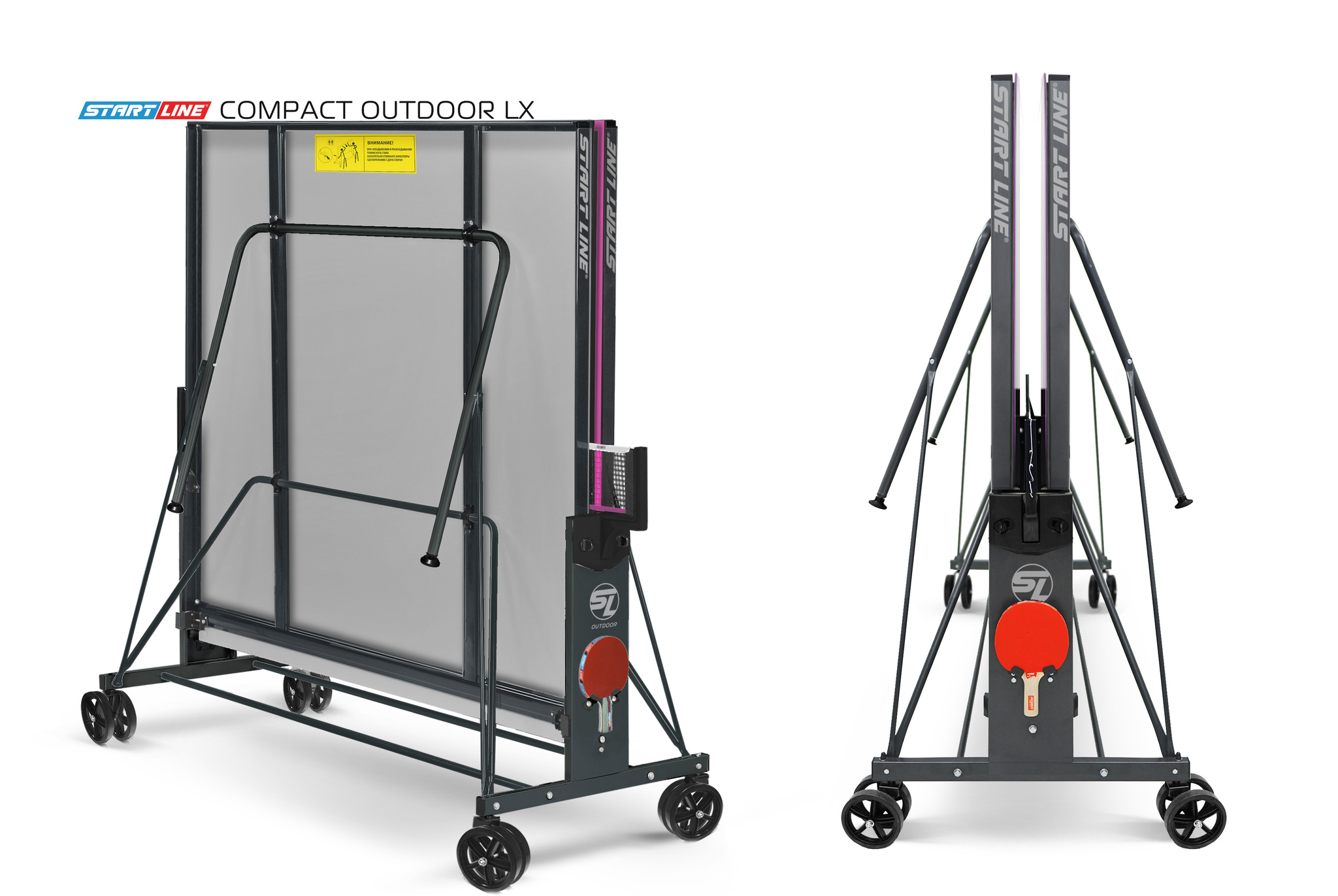 Модель Compact-LX Всепогодный Black укомплектована удобным держателем для ракеток и мячей, а также встроенной сеткой, не требующей демонтажа при складывании. Начать игру можно в любое время, ведь все необходимое оборудование всегда под рукой.