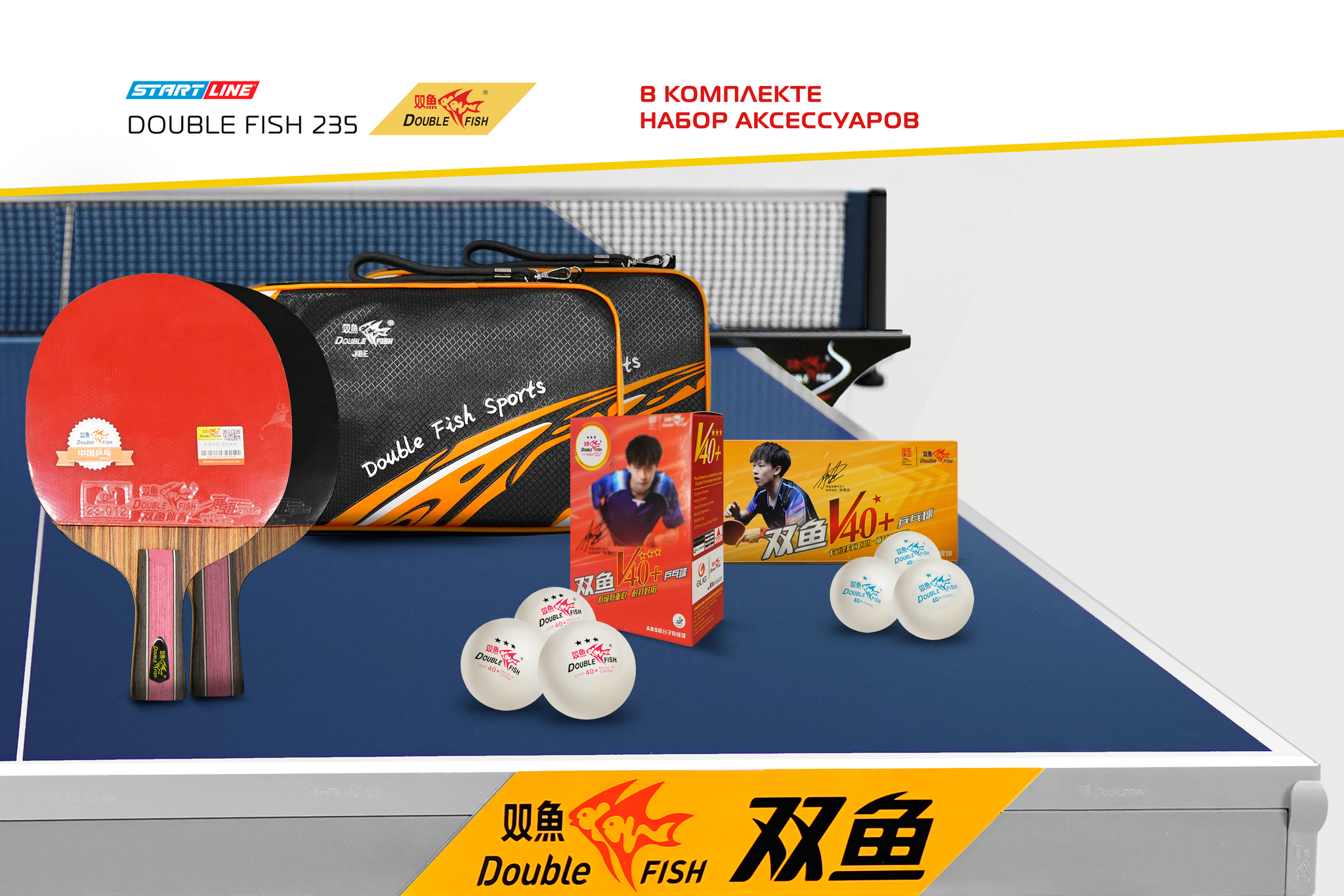 Стильный и лаконичный дизайн теннисного стола является еще одним преимуществом модели Double Fish 235. Важно, что в комплекте со столом идет профессиональный набор аксессуаров для настольного тенниса. В набор входят сетка XW-923 для теннисного стола, две ракетки J8 c накладками ITTF в чехлах, а также мячи 6 шт 3* и 10 шт 1*.