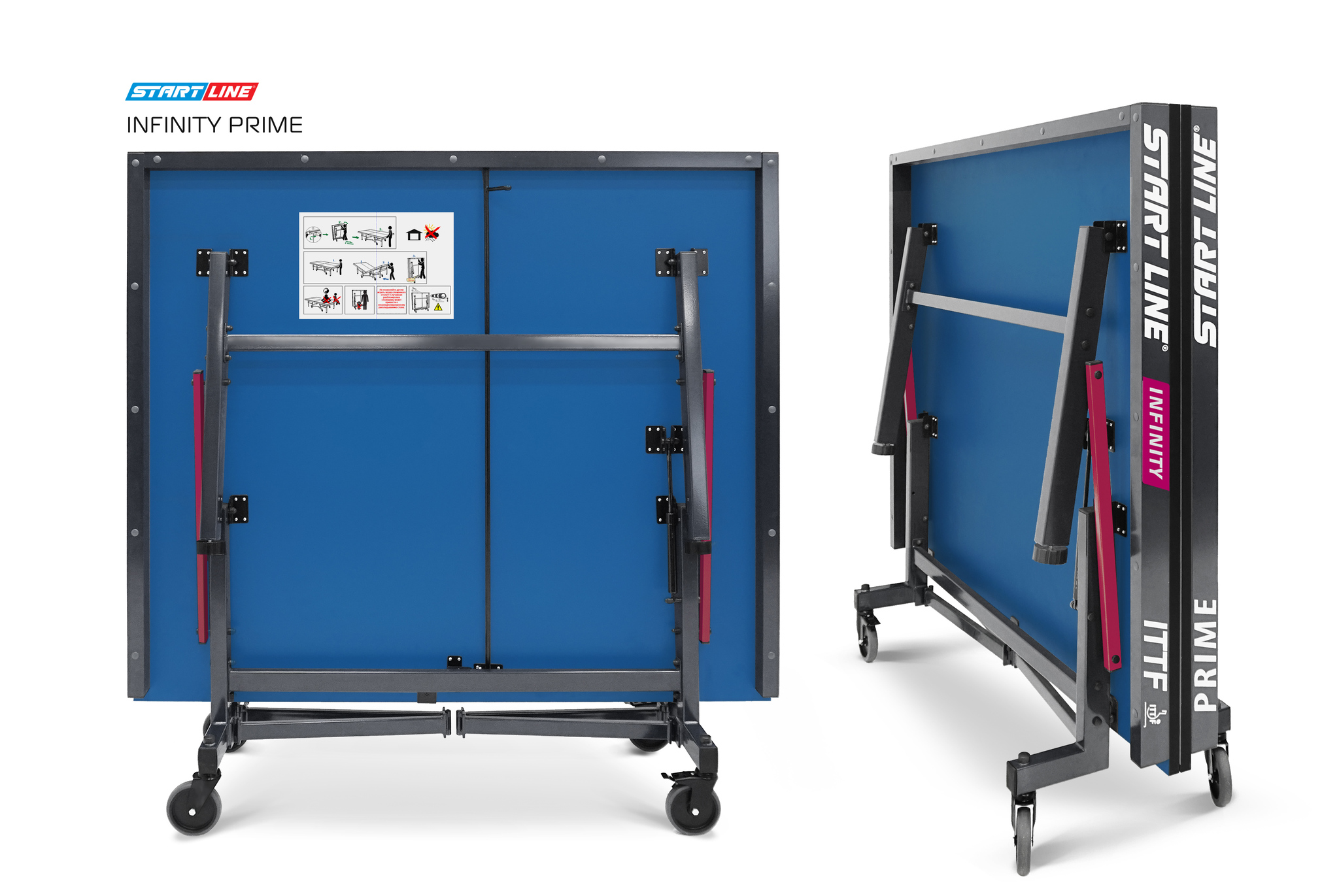 Производство теннисного стола INFINITY PRIME выполнено на базе последних мировых тенденций. При его разработке использовались только современные методы построения теннисного стола. Стол INFINITY PRIME предназначен для игры в помещении. Имеет эффектный дизайн — графитовый каркас с акцентами розового цвета. Стол соответствует высшим стандартам, предъявляемым Международной федерацией настольного тенниса (ITTF) к теннисному оборудованию.
