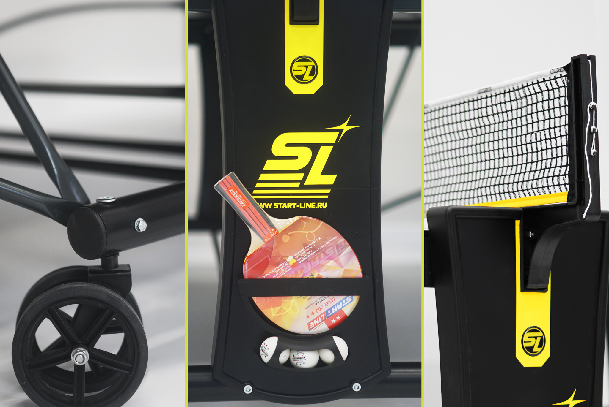 Уникальная система складывания — собственная разработка Start Line. Все манипуляции производятся с рабочего места игрока для каждой из столешниц. Для трансформации стола достаточно усилий одного человека.