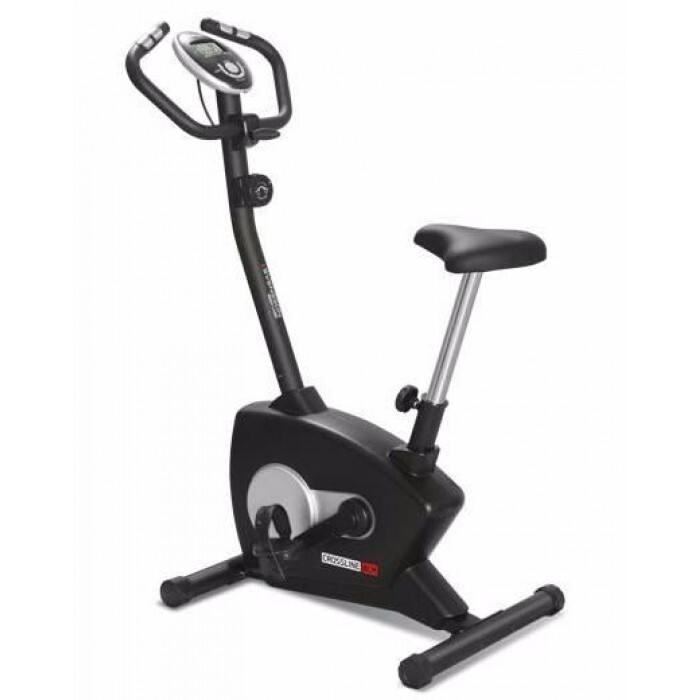 За показатели пульса отвечают вмонтированные в рукоятки сенсорные датчики пульса. Велотренажер удобно перемещать благодаря двум транспортировочным роликам, а точное горизонтальное положение обеспечивают компенсаторы неровностей пола. Черно-белый LCD-дисплей диагональю 9 см одновременно выводит на экран различные параметры тренировки - время, дистанцию, скорость, калории, обороты в мин., пульс. Помимо этого, здесь предусмотрена функция фитнес-теста (Recovery) - она позволяет быстро оценивать тренированность человека и определять, насколько хорошо развита его сердечно-сосудистая и дыхательная системы. Конструкция рамы рассчитана на комфортную тренировку пользователей ростом до 190 см и весом до 120 кг.