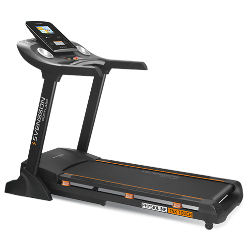 SVENSSON BODY LABS PHYSIOLINE TNX TOUCH относится к классу дорожек для полупрофессионального применения. Отличительной особенностью тренажера является двигатель переменного тока (3 л.с., AC). Это означает, что дорожка подготовлена для эксплуатации в гостиницах, небольших корпоративных залах, реабилитационных центрах - т.е. коммерческих локациях с небольшой нагрузкой на оборудование (для использования в фитнес-клубах дорожка не подходит). Временная нагрузка на двигатель, произведенный японской Mitsubishi, составляет 8 часов в сутки, а максимальный вес пользователя ограничен 160 кг. Помимо двигателя, здесь установлено толстое полотно толщиной 2,8 мм коммерческого уровня, которое также несет в себе ортопедическую функцию. Размер полотна составляет 142*50 см, это обеспечивает полную свободу движений на любых скоростях, включая максимальные. Динамические характеристики удовлетворят любого пользователя - скорость варьируется от 0 до 20 км/ч, а угол наклона изменяется в диапазоне от 0 до 18%. За амортизацию отвечает проверенная временем амортизационная платформа physio-Run™, построенная с использованием двойной деки и 6 силикон-гелиевых подушек с пружинами. Такая технология обладает великолепными демпфирующими свойствами и оказывает минимальную ударную нагрузку на колени, стопы и позвоночник.