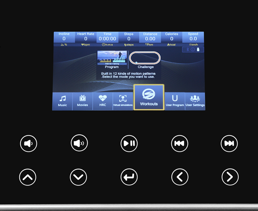 Тренировочный компьютер представлен цветным TFT-дисплеем диагональю 18 см и сенсорными клавишами управления. За счет суперсовременного экрана существенно расширился тренировочный и интерактивный функционал тренажера. Классические программы включают в себя 17 режимов, направленных на различные задачи - тренировку выносливости, интервалы, фартлек, кардио режим и т.д. Помимо этого, есть 12 режимов соревнований с виртуальными соперниками, в том числе забеги с профессиональными спортсменами. На стыке спорта и развлечений находится функция виртуального ландшафта "Virtual Active" - 6 профессионально сделанных видероликов перенесут пользователя на просторы различных мировых ландшафтов, на которых и будут проходить тренировки. Также можно воспользоваться самостоятельно регулируемым ручным управлением или создать собственную программу в одном из 20 пользовательских режимов. Для считывания показаний пульса в поручни дорожки вмонтированы контактные сенсорные датчики.