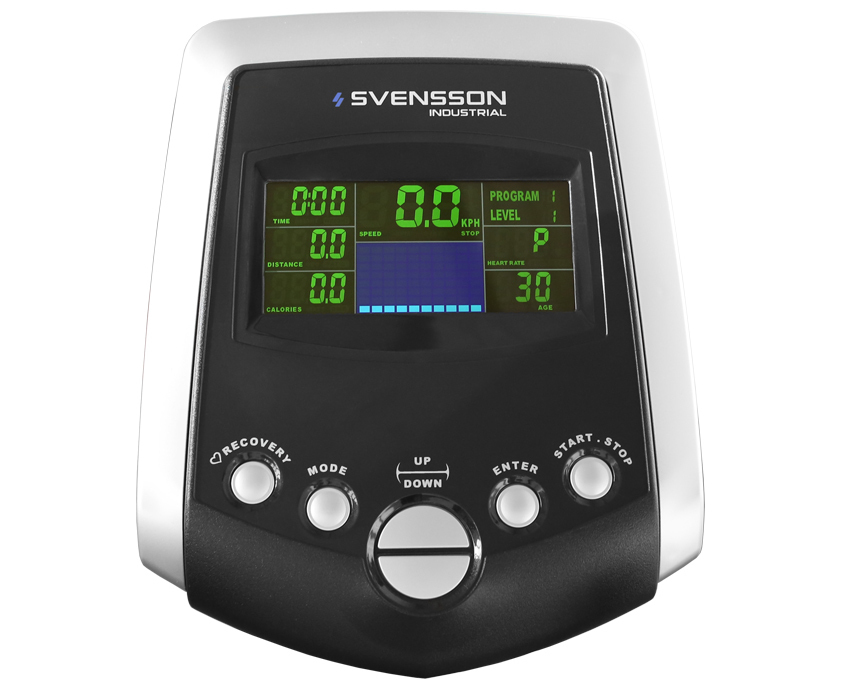 BASE X550 от SVENSSON INDUSTRIAL - отличное высокотехнологичное решение для дома или коммерческого сектора с невысокой проходимостью (отели, корпоративные залы, спортивные школы и санатории). Переднеприводный эллипсоид построен на новейшей безрельсовой раме powerJoints™. Во всех узлах движения используются исключительно межосевые сочленения и взаимодействующие с ними подшипники. Никаких рельс, никаких скользящих по ним роликов - все это в прошлом. Благодаря такой конструкции достигается ряд принципиальных преимуществ. Во-первых, это естественная и биомеханически верная траектория движения, обеспечивающая максимально эффективную загрузку мышц ног, бедер и ягодиц. Во-вторых, повышенная надежность за счет уменьшения количества активных трущихся элементов (к примеру, роликов). В-третьих (вытекающее из второго), полное отсутствие шумов и вибраций. В-четвертых, существенная экономия площади.