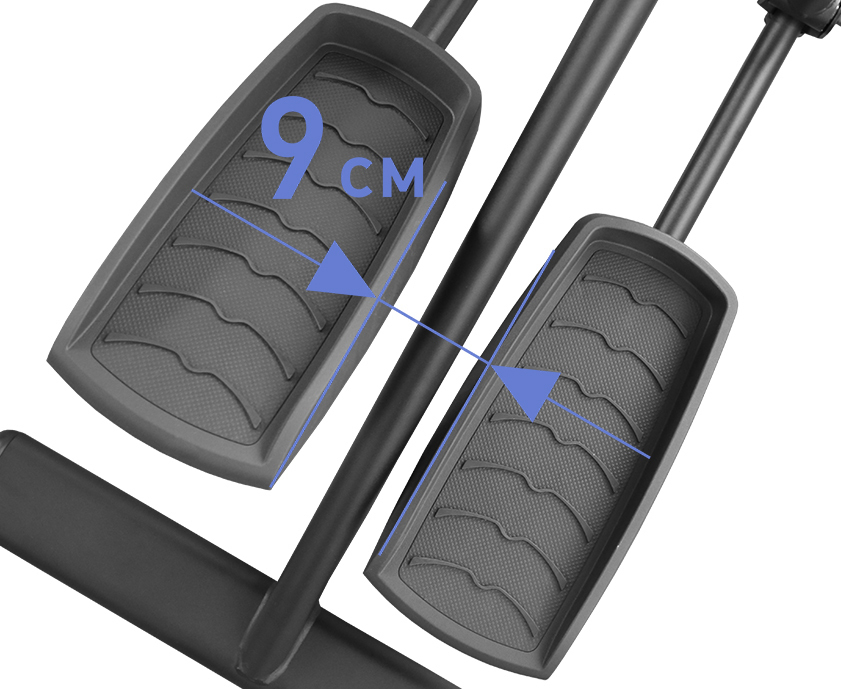 К числу других преимуществ BASE X550 относится сбалансированный маховик с инерционным весом 25 кг и механически изменяемая длина шага. Она регулируется в одном из 3 положений и может быть выставлена на 18 дюймов (46 см), 20 дюймов (51 см) или 23 дюйма (58 см). За счет переднего привода обеспечивается минимальное расстояние между педалями (супермалый Q-фактор E.S.Q.F.) - 9 см. Максимальный вес пользователя - 160 кг.