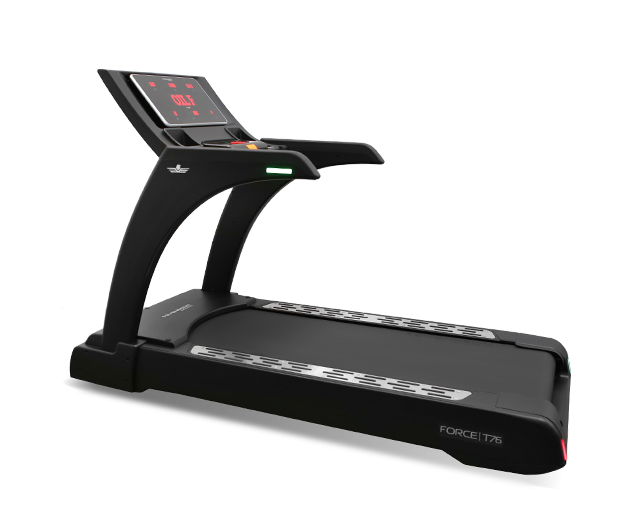 Такого рода массивную машину трудно представить без надежного мотора, который способен принять на себя чрезмерную нагрузку. На FORCE T76 эту роль выполняет двигатель американской компании Leeson мощностью 5.0 л.с. переменного тока (при пиковых нагрузках – 8.2 л.с.). Рабочая зона оснащена ортопедическим полотном коммерческого класса толщиной 3.5 мм, рассчитанным на бесперебойную эксплуатацию в режиме максимальных нагрузок. Размер бегового полотна составляет 164*61 см – это открывает большие возможности для тренировочного процесса. Помимо бега и ходьбы, пользователь сможет делать выпады, приставной шаг, приседания и другие виды упражнений. Что касается остальных характеристик, то они также держат максимально высокую планку – скорость разгоняется до 25 км/ч, а угол наклона изменяется от 0 до 15%. Для безопасности на тренажере установлены световые индикаторы движения. Зеленый цвет показывает, что дорожка находится в режиме ожидания. Красный цвет сигнализирует о том, что беговое полотно находится в движении, нужно быть осторожным при подходе к тренажеру и его эксплуатации.