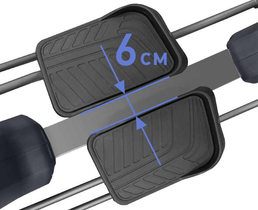 Антискользящие педали увеличенного размера позволяют занять любое удобное положение. Рифленая поверхность обеспечивает надежное сцепление между подошвами тренировочной обуви и педалями. Помимо этого, накладки на педали выполнены из прорезиненного материала - таким образом, создается определенный амортизационный эффект. Накладки легко снимаются и быстро моются.