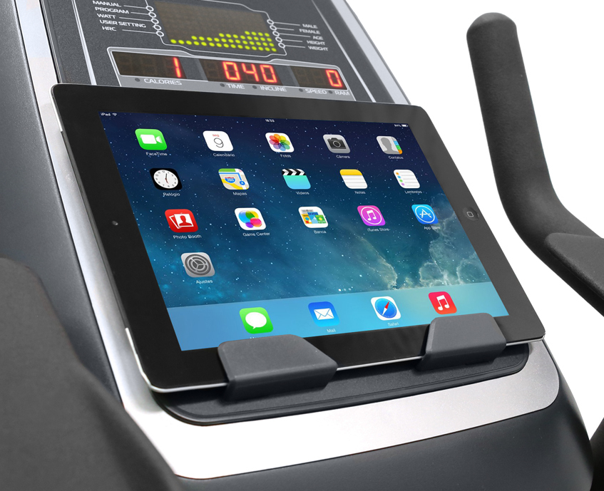 Подставка под планшет или смартфон является сравнительно небольшой, но важной опцией. 30 минутная тренировка является достаточно однообразным занятием, поэтому различные развлекательные элементы можно и нужно вносить. Занимаясь на эллипсе, вполне комфортно смотреть любимые фильмы и программы, серфить в Интернете, использовать видеотелефонию и многое другое.