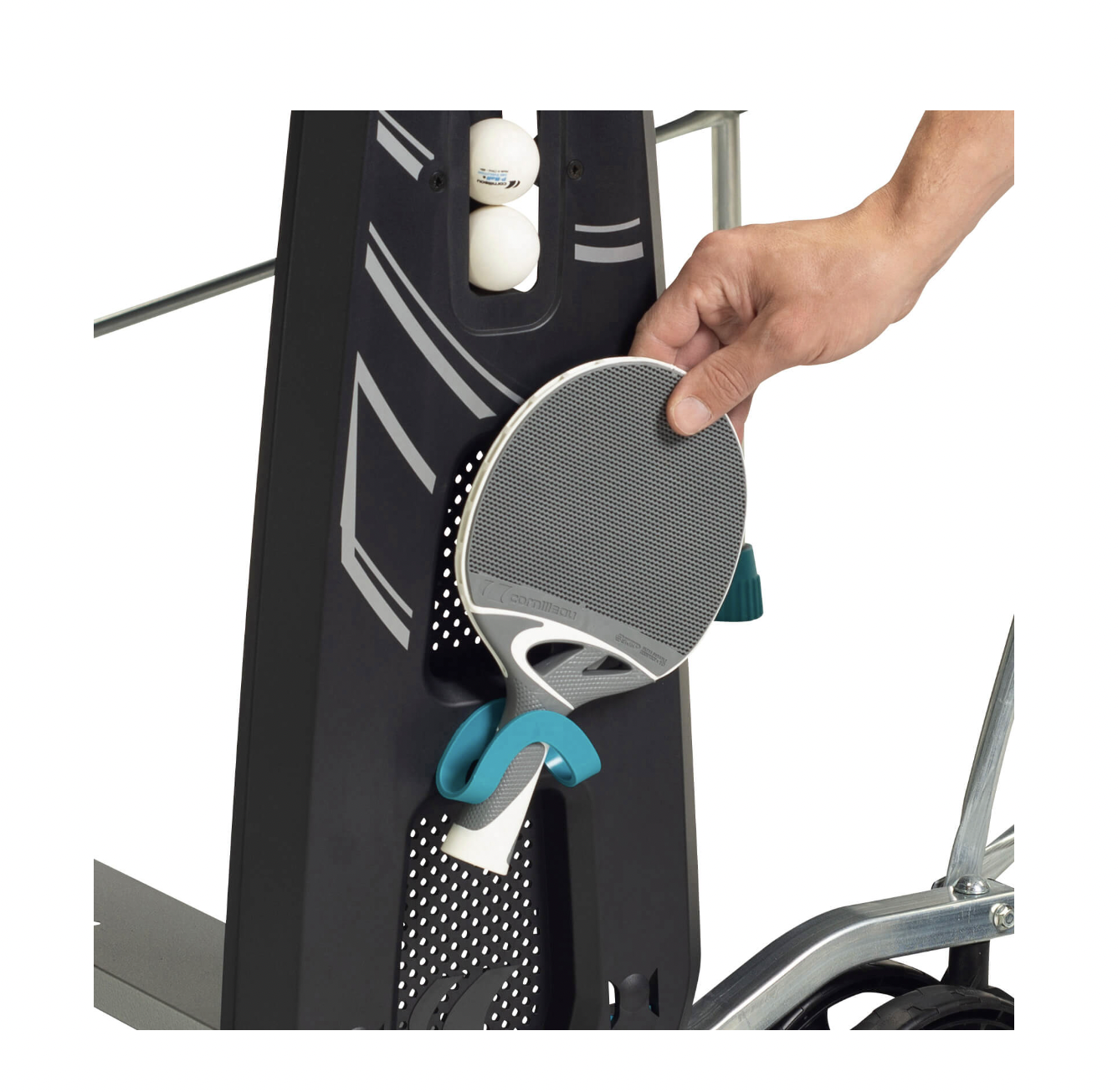 Места для размещения двух ракеток и четырех мячей. Инвентарь хранится вместе с Вашим теннисным столом, а значит всегда под рукой. Начните игру в любой момент, отправляться на поиск мячей больше не нужно!