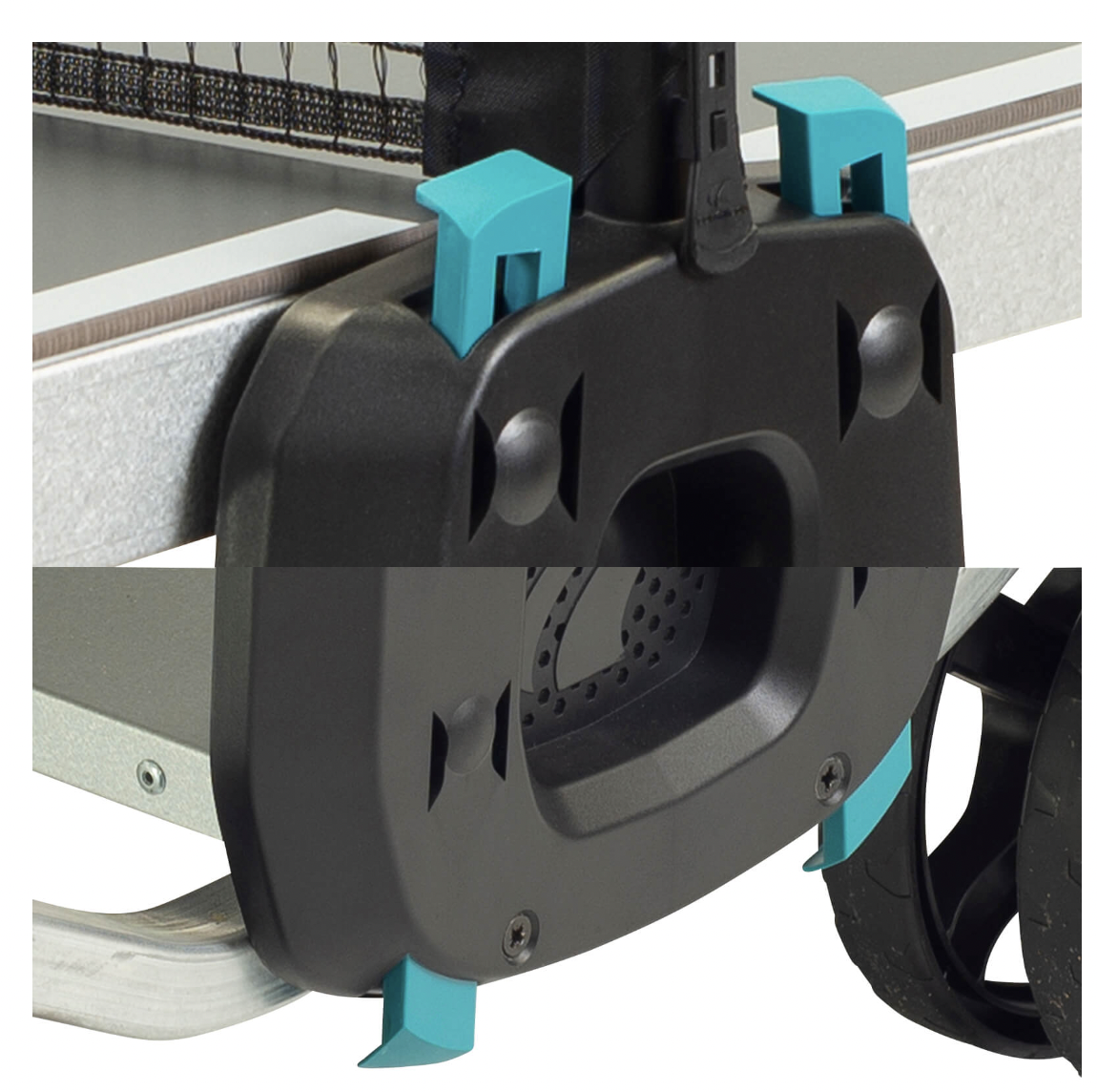 Сдвоенные транспортировочные ролики специально разработаны для условий открытых площадок. Они имеют множество преимуществ: оптимальный размер для легкого преодоления препятствий, плавное перемещение по любому типу местности, исключительную маневренность, которая гарантирует устойчивость в самых сложных ситуациях, к примеру, при крутом повороте. Открывайте неизведанные территории для игры с Вашим теннисным столом Cornilleau!