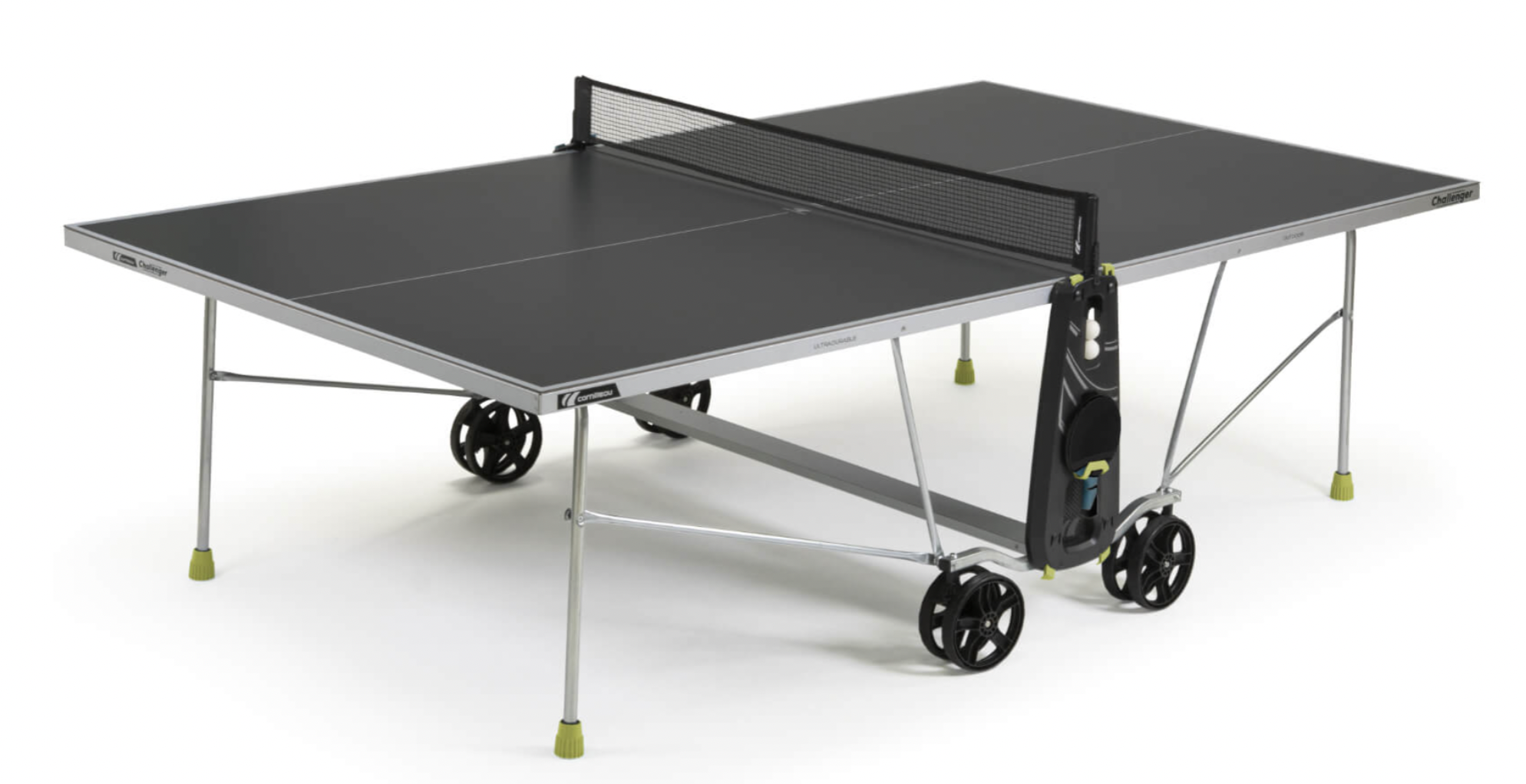 Все материалы теннисных столов Cornilleau разработаны, чтобы выдерживать самые суровые испытания. Дождь, снег, высокие и низкие температуры — Ваш теннисный стол Cornilleau всегда остается неизменным! Композитные столешницы способны не только стойко переносить негативные факторы внешней среды, но и выдерживать серьезные физические нагрузки, к примеру, удары ракеткой, неосторожное обращение — эти воздействия не оставят своего следа. Все металлы обладают антикоррозионными свойствами и выбраны исходя из их высокой стойкости. Отбортовка (кант) игровой плиты выполнена из материала Aluzinc, который представляет собой сталь с высокотехнологичным покрытием из сплава алюминия и цинка. Этот материал отличается исключительной прочностью. В том числе и благодаря тщательному подбору материалов, компания Cornilleau дает 10 лет гарантийной поддержки на свои всепогодные теннисные столы.
