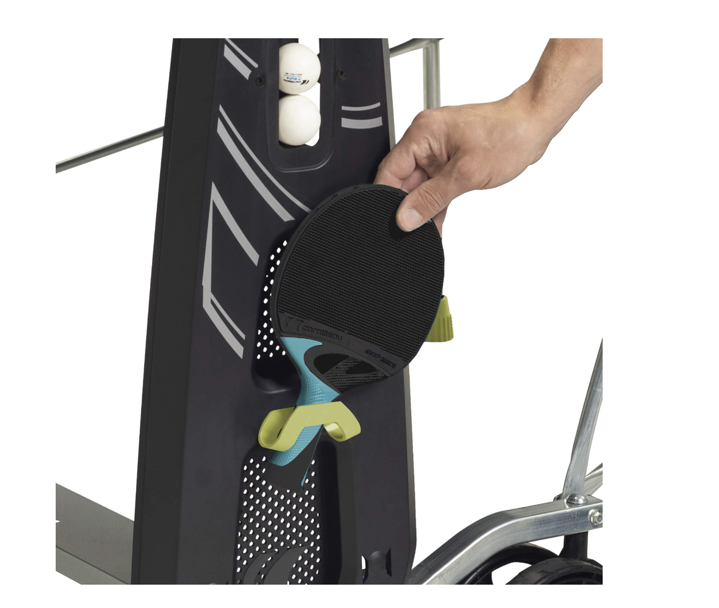 Места для размещения двух ракеток и четырех мячей. Инвентарь хранится вместе с Вашим теннисным столом, а значит всегда под рукой. Минимум времени на подготовку — максимум игрового процесса!