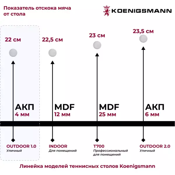 теннисный стол Koenigsmann TT OUTDOOR 1.0 BLUE - это идеальный выбор для тех, кто хочет насладиться игрой в настольный теннис на свежем воздухе. Неважно, опытный игрок Вы или только начинаете свое знакомство с этим видом спорта, этот стол подарит Вам множество приятных и незабываемых моментов!