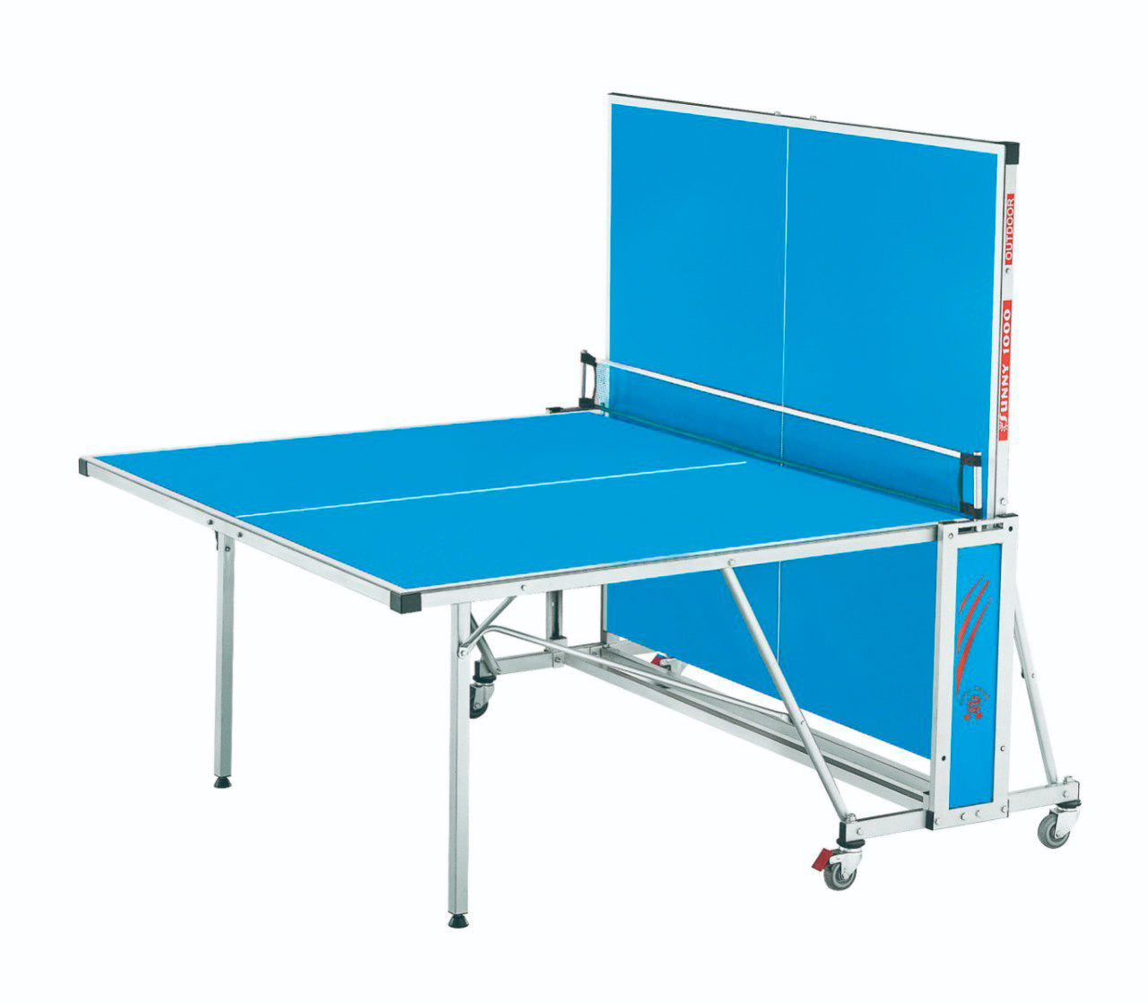 Теннисный стол имеет 4 колеса диаметром 75 мм, все колеса маневренные и два колеса оснащены системой блокировки.