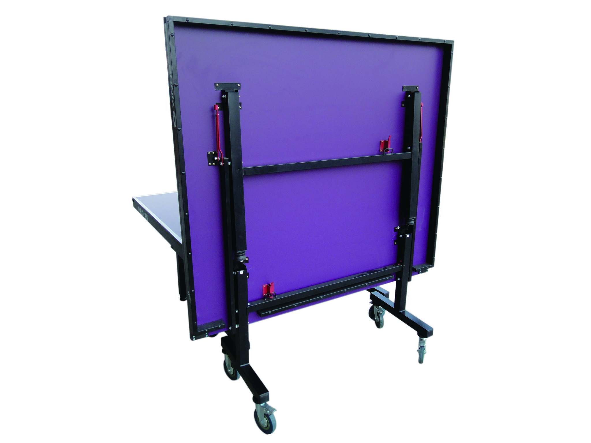 Каждая половина стола YINHE PRO 25 может складываться и перемещаться отдельно. Благодаря такой конструкции 5 столов YINHE PRO 25 в сложенном состоянии занимают такую же площадь как 2 стола обычной системой складывания.