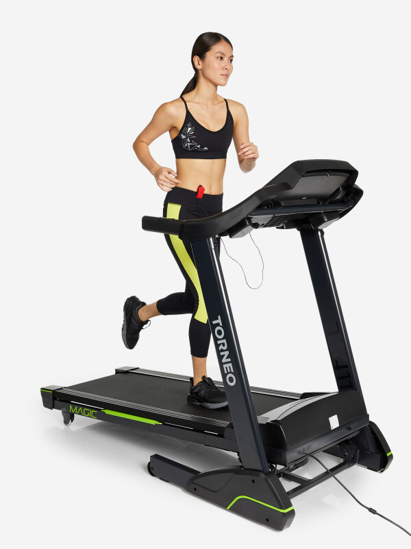 Барабанный маховик и мотор беговой дорожки, выполненные по технологии ExaMotion, обеспечивают надежное, плавное и малошумное вращение. -