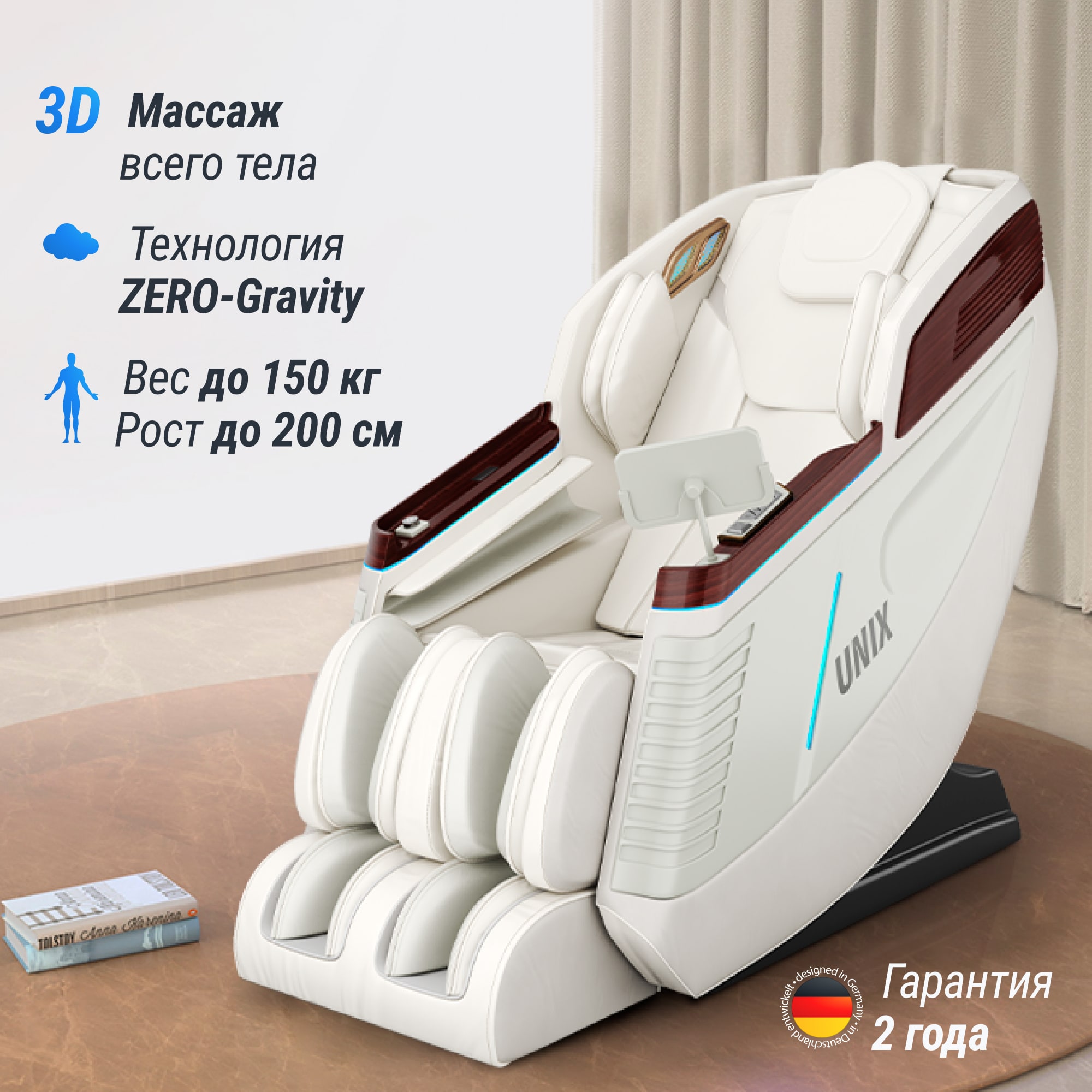 - 3D массаж. Благодаря точечной проработка мышц достигается максимальное расслабление и релакс. Движение роликов соответствует изгибам тела, что позволяет охватить большую часть поверхность рук, голеней, ног, плеч и избавиться от боли в мышцах ног и плеч.
