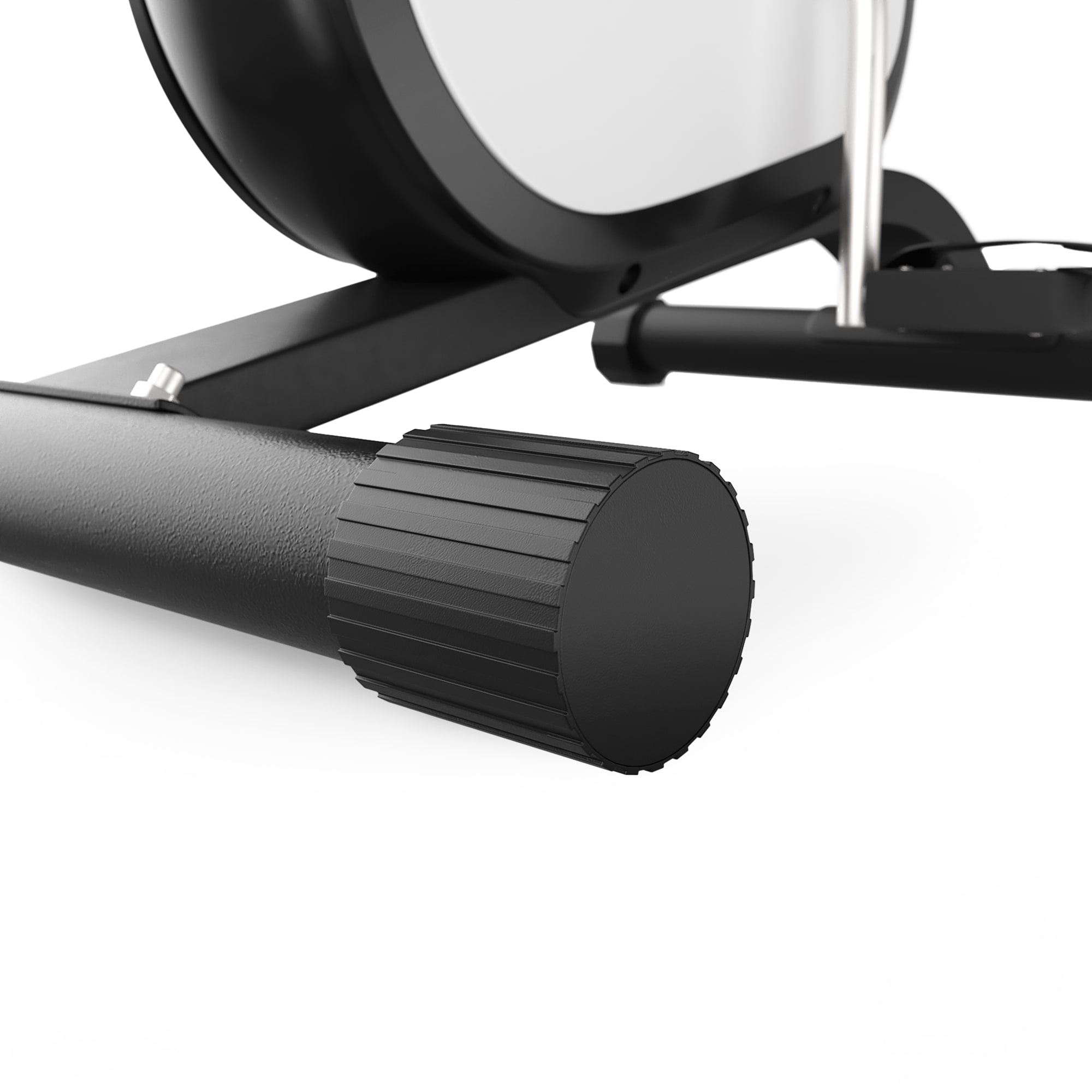 Тренажер обладает вертикальной посадкой, что обеспечивает более естественное положение тела, приближенное к езде на велосипеде. Это позволяет задействовать больше мышечных групп, включая ноги, ягодицы и мышцы кора, что делает тренировки более интенсивными и эффективными. Плавность хода по всей траектории движения педалей обеспечивается сбалансированным маховиком с собственным весом 3 кг и с инерционным весом 6 кг.